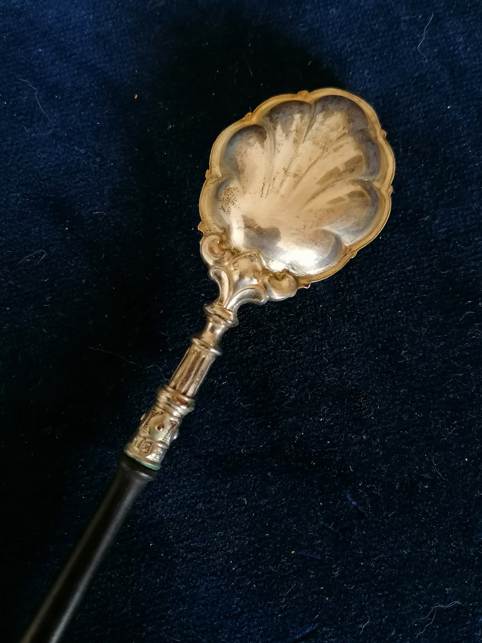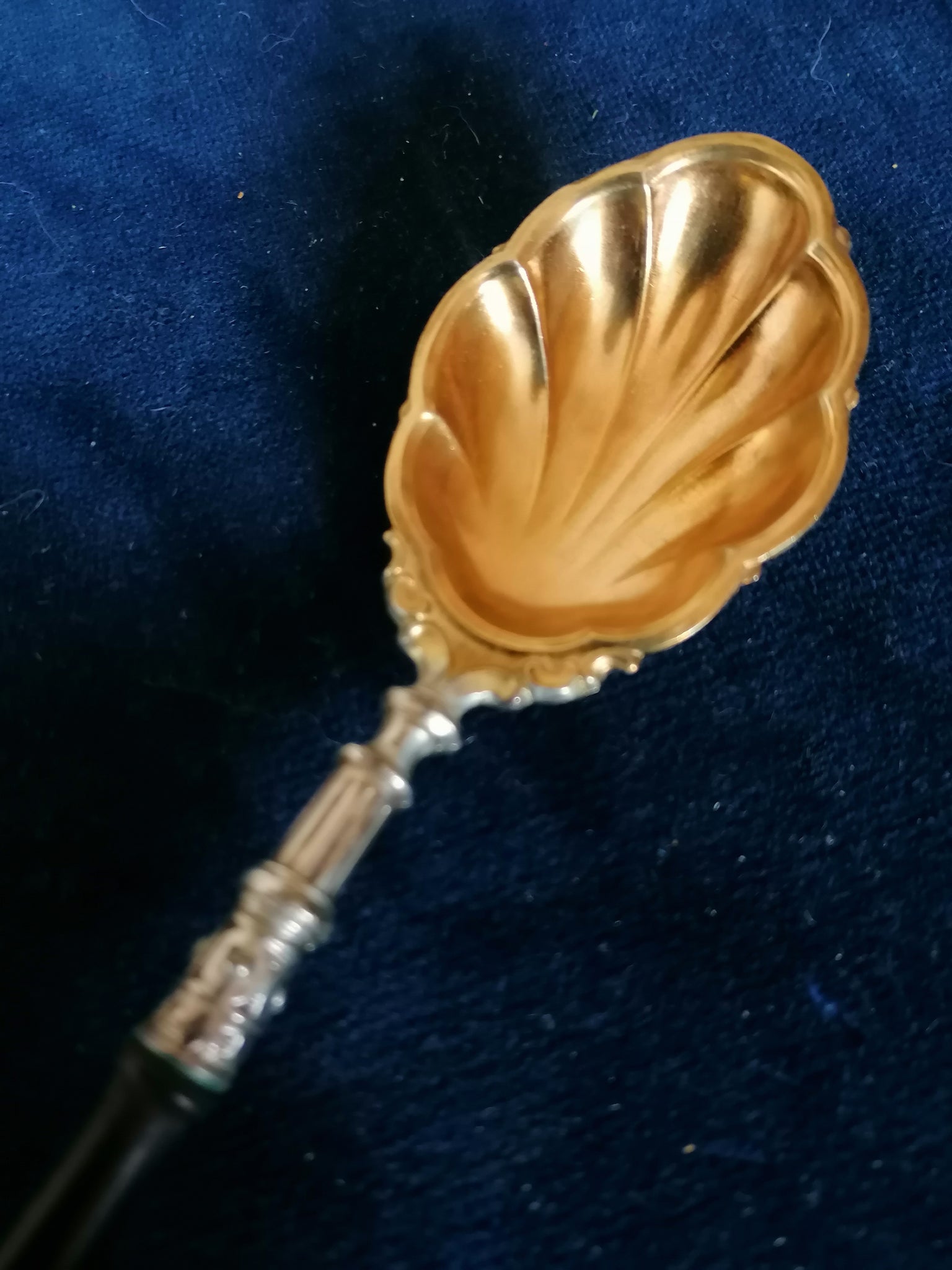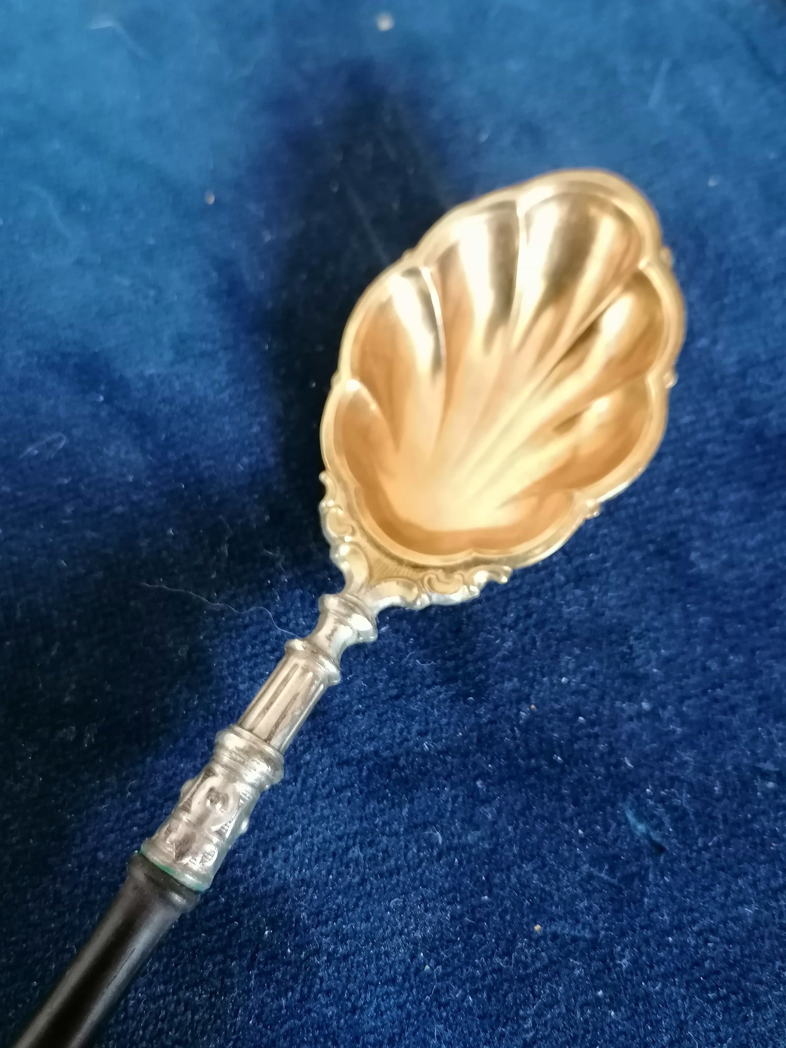 Paire de cuillère à servir en argent massif doré  austro hongrois XIXème, manche en bois noirci.