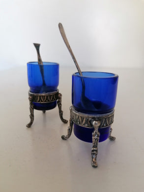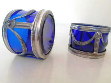 Paire de salière style Louis XVI argent et verre bleu. Travail Français