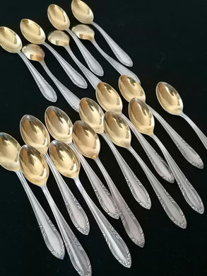 Série de 19 cuillières à café argenté et doré, modèle noblesse. Parfait état.