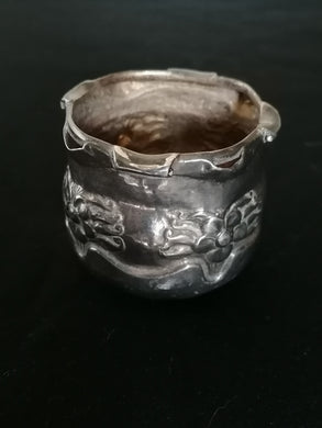 Petit panier en argent massif tressé. Probablement Birmanie ou japon.