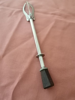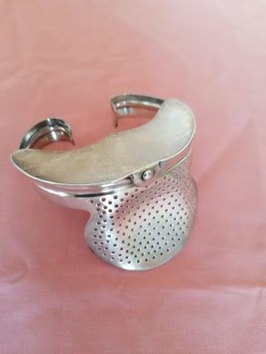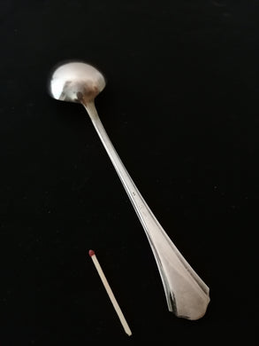 Cuillière à sauce avec, modèle qui retiens le gras. Argenté.