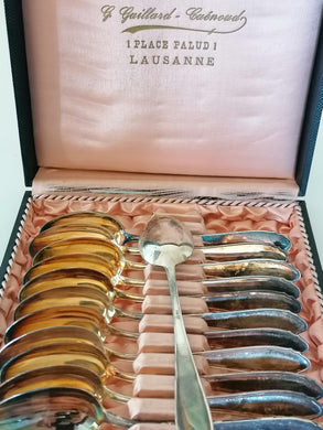 Série de 12 cuillères à dessert en argent massif Jezler. Avec son coffret.