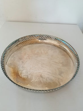 Plateau rond ouvragé en métal argenté Suédois.