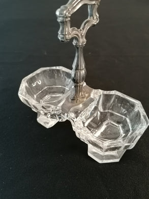 Salière ancienne en cristal taillé et argent.