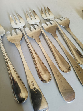 Pays Bas série de 8 Fourchette à huîtres en argent 0.835 . Poinçon de fabrication 1912