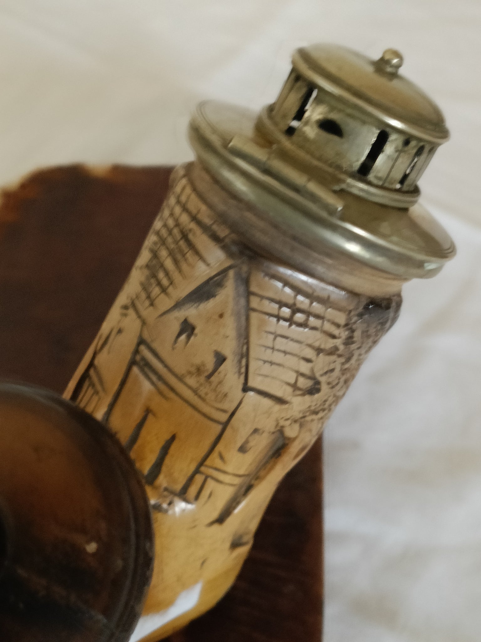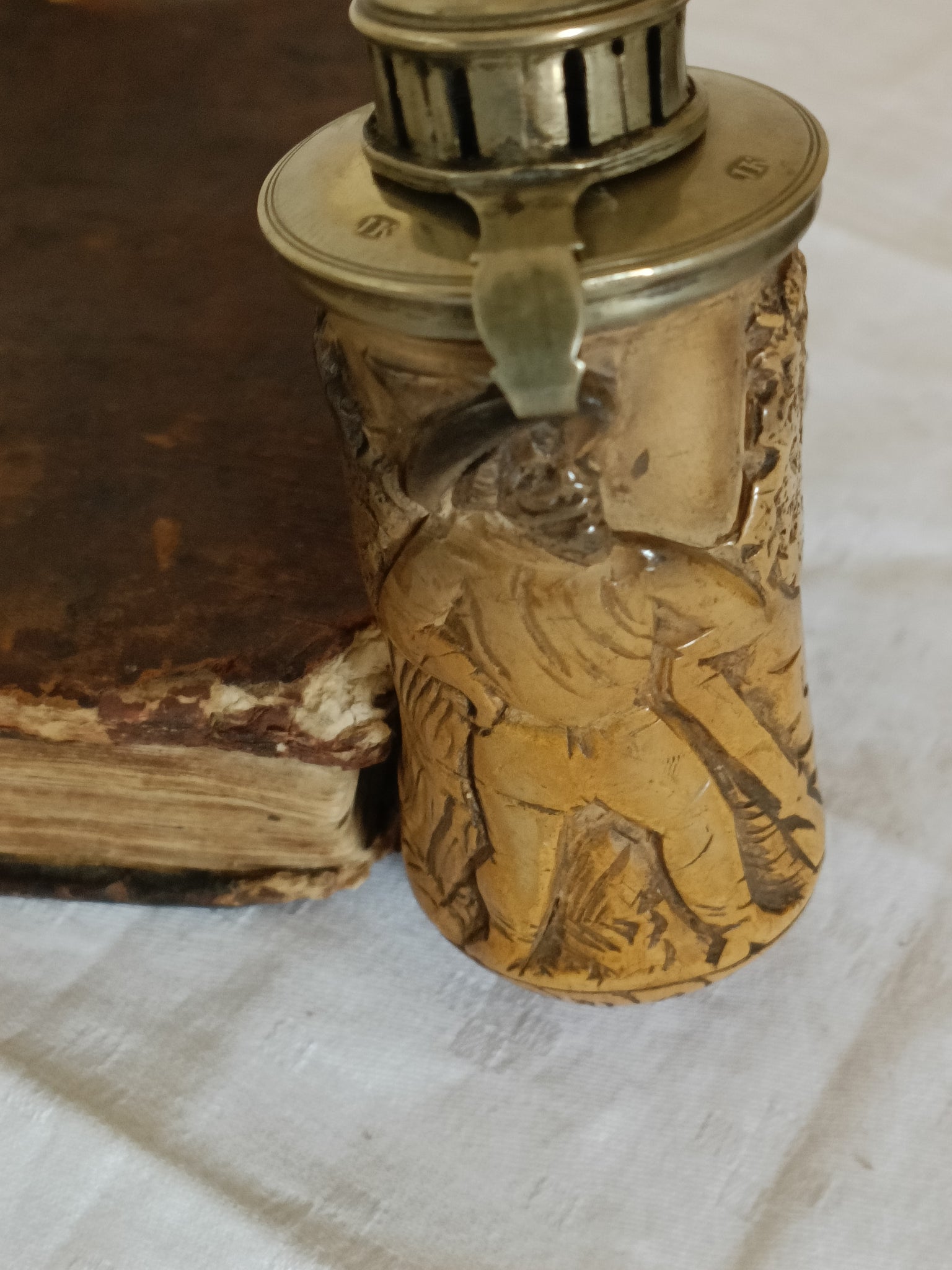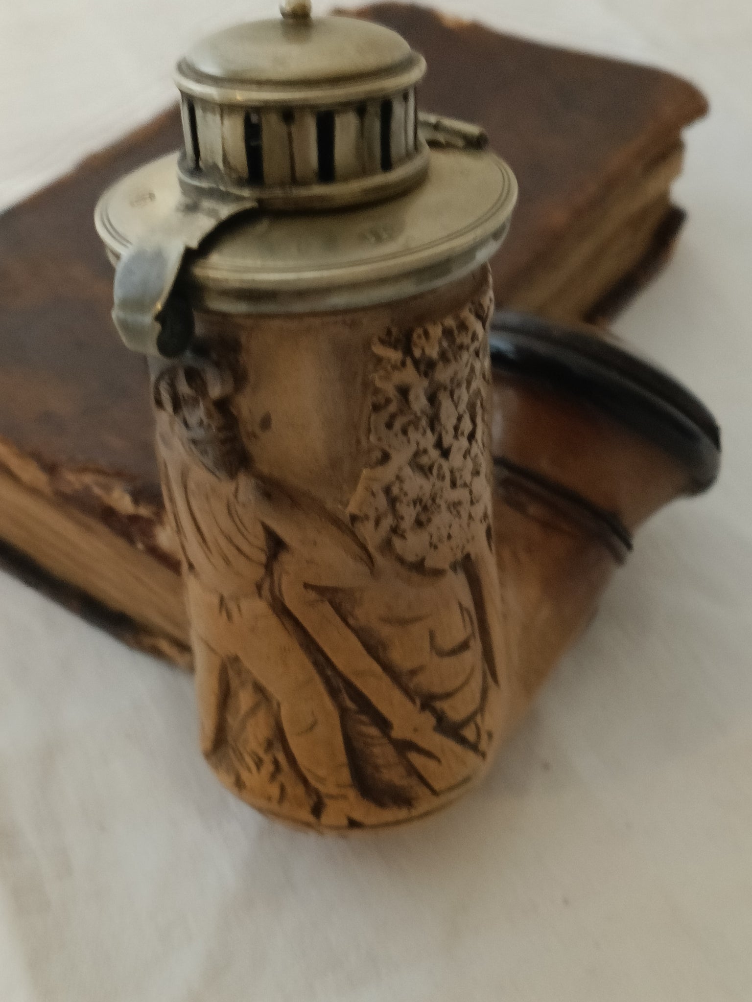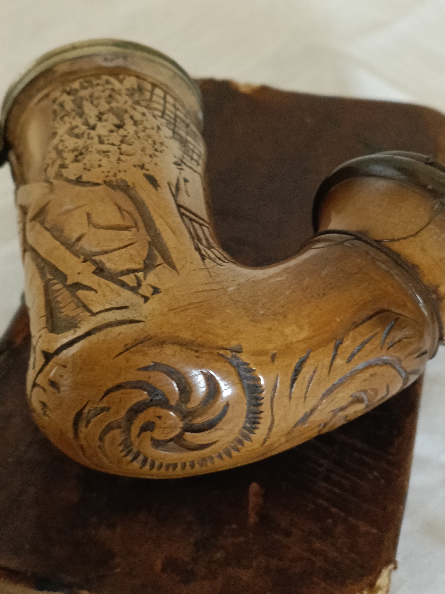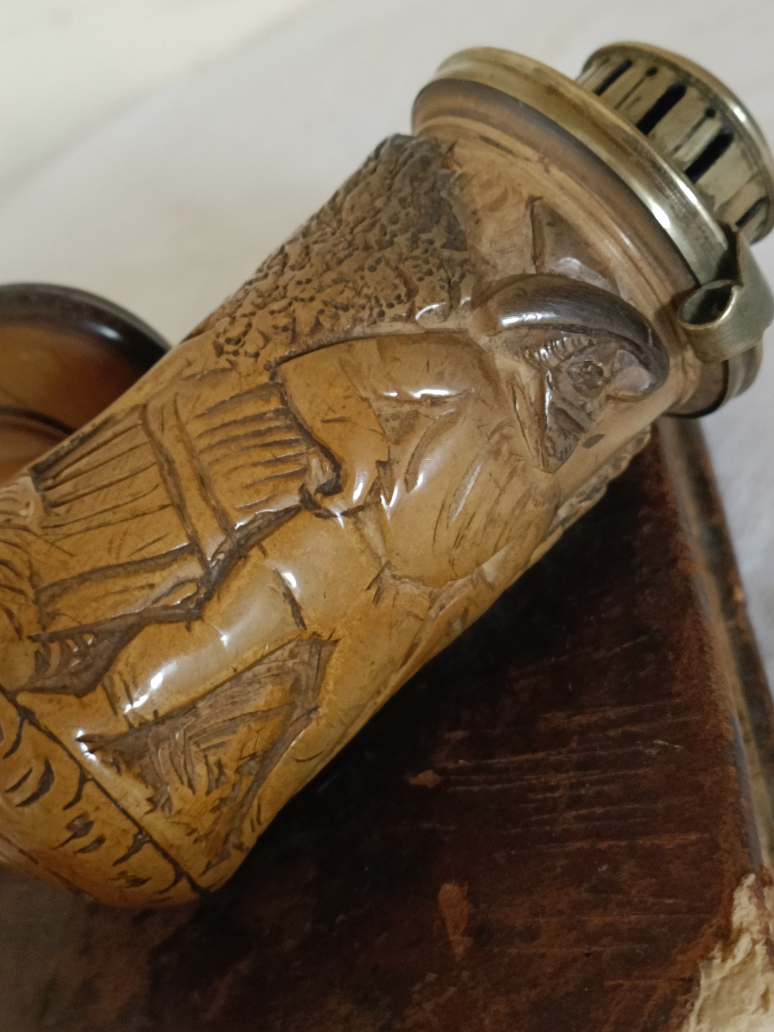 Fourneau à pipe en écume de mer 18ème probablement hollandais, décors vie rurale.