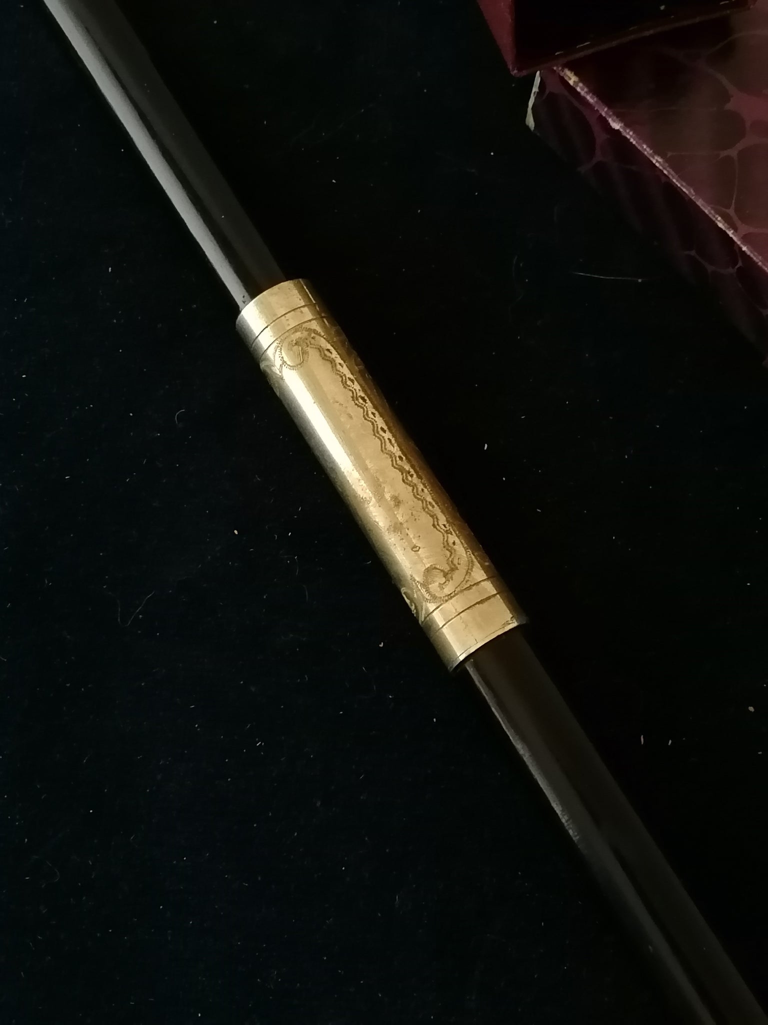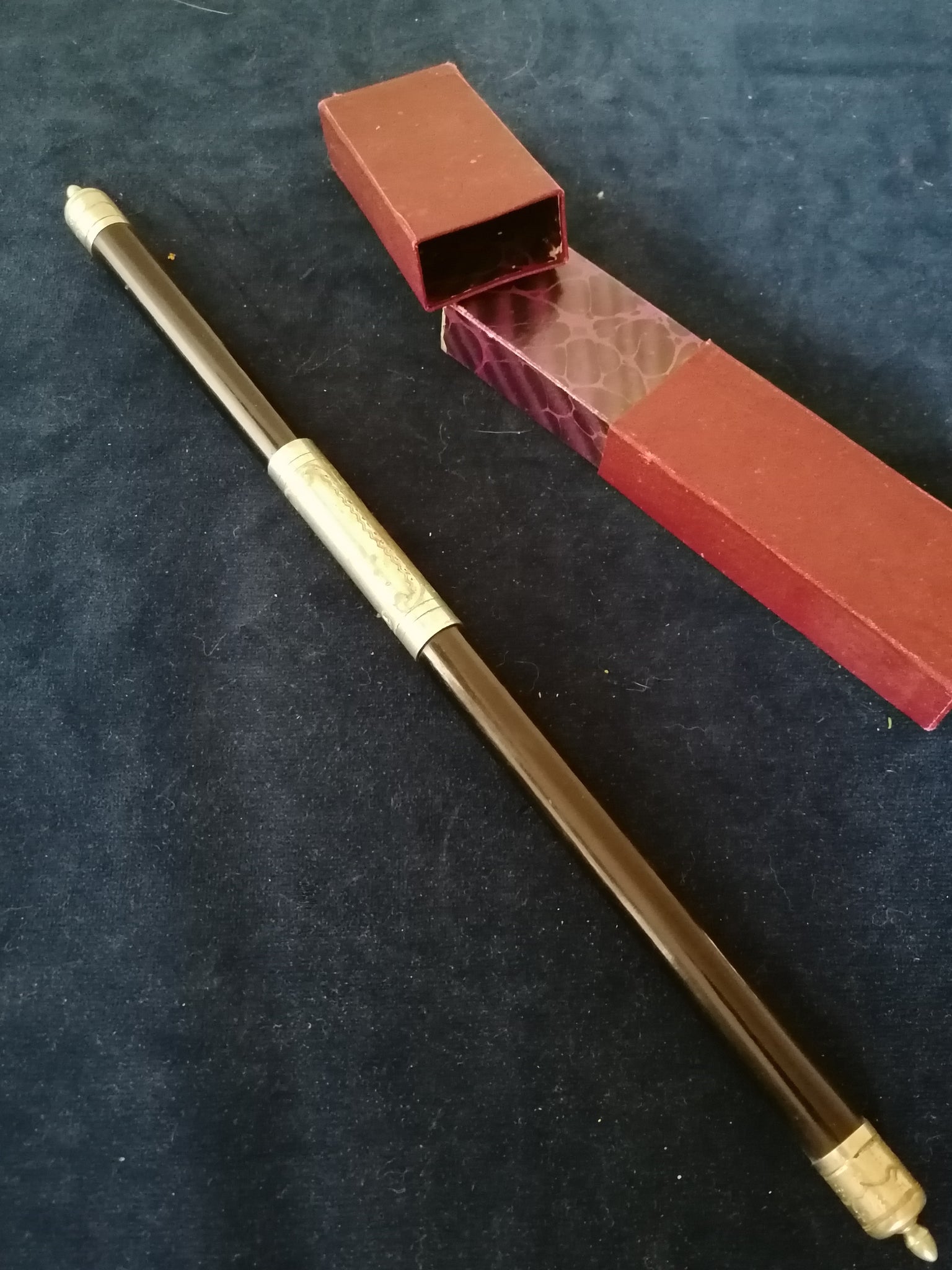 Object curieux, je ne sais ce que c'est.. Avec son écrin, manche en bois et métal argenté.