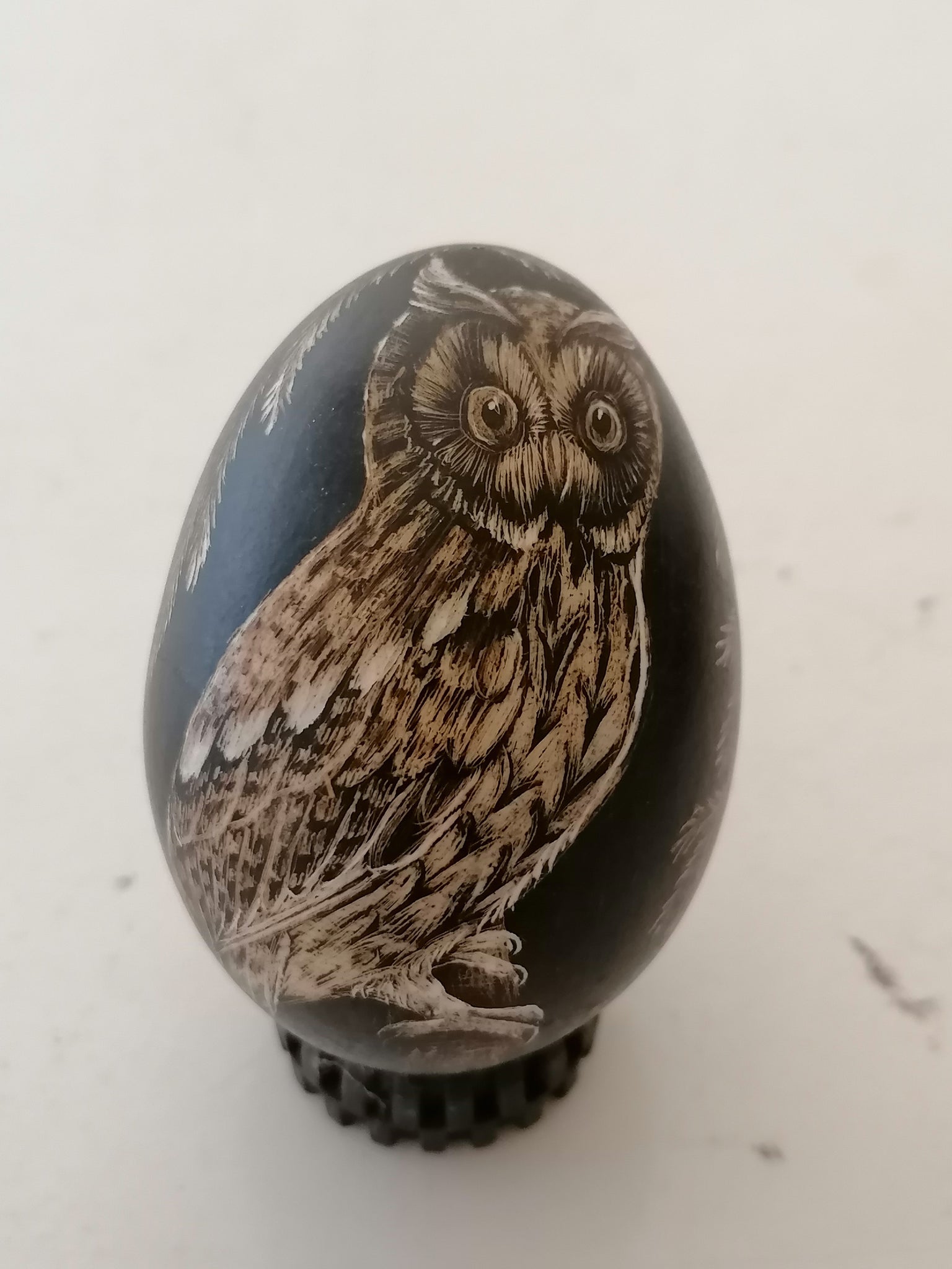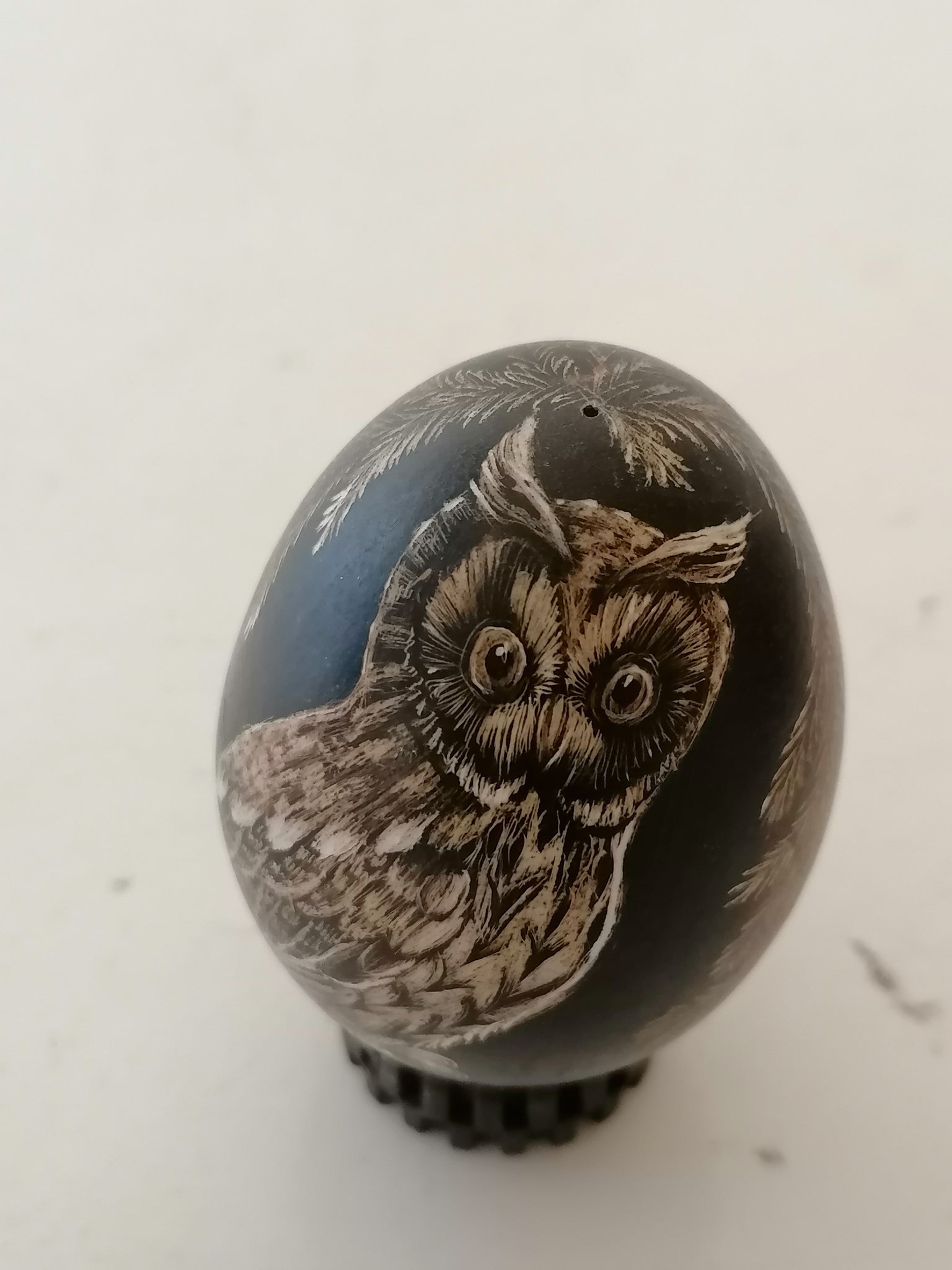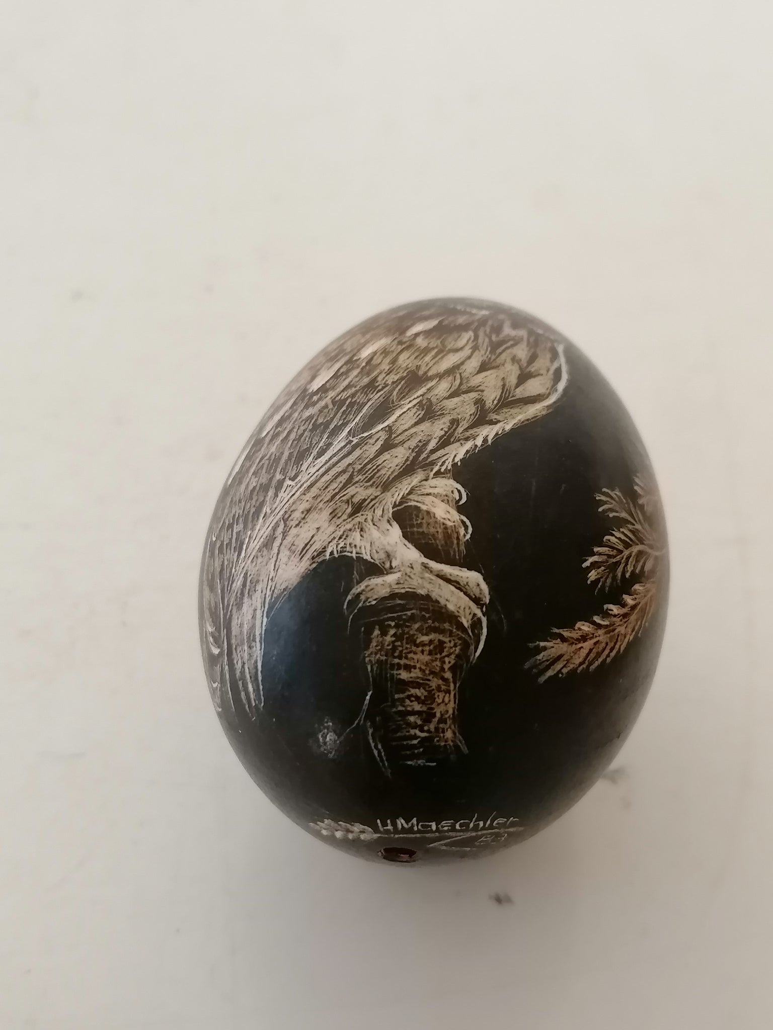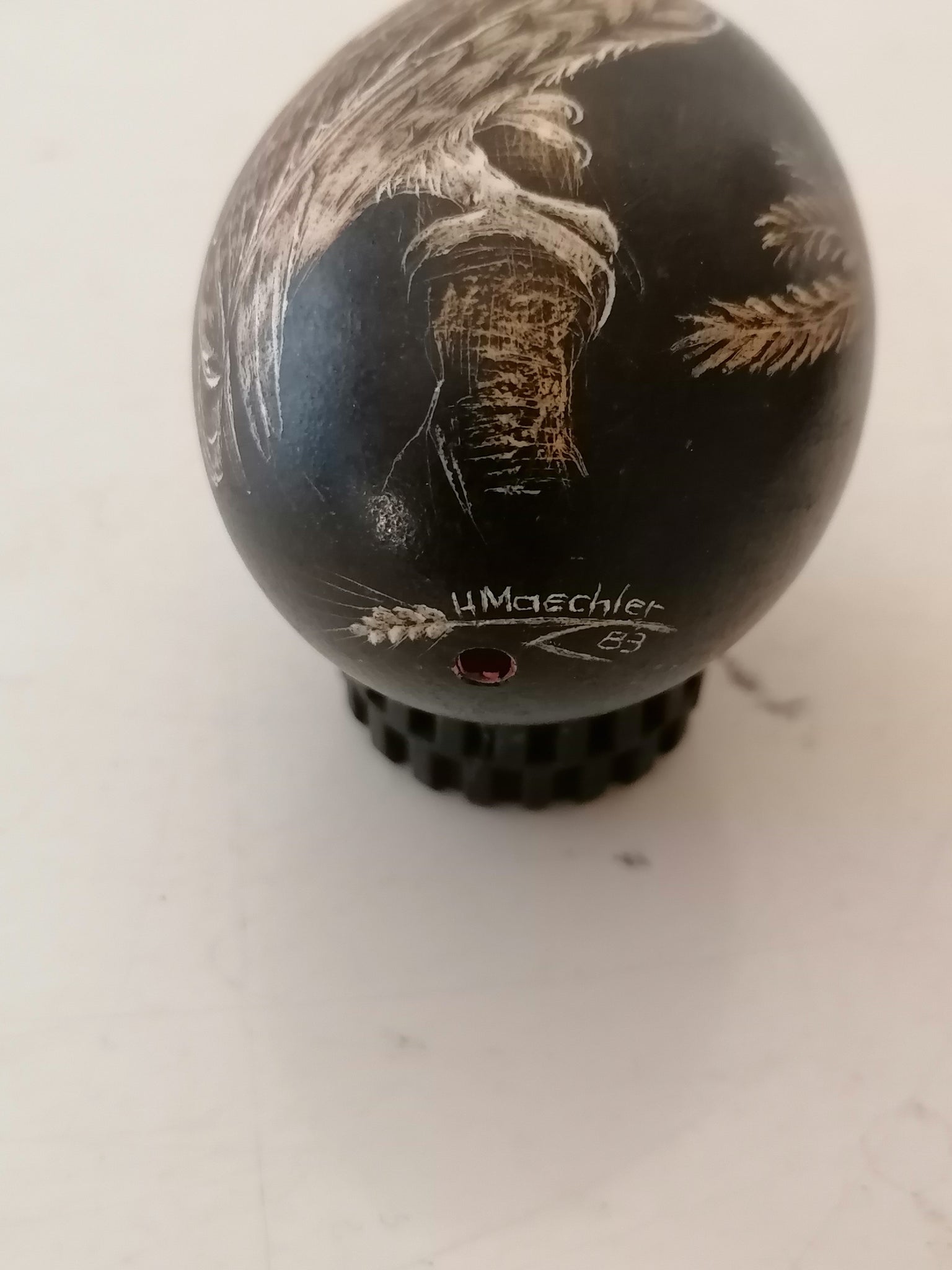 Œuf de poule peint et signé. Probablement Suisse c'est traditionnel ici.