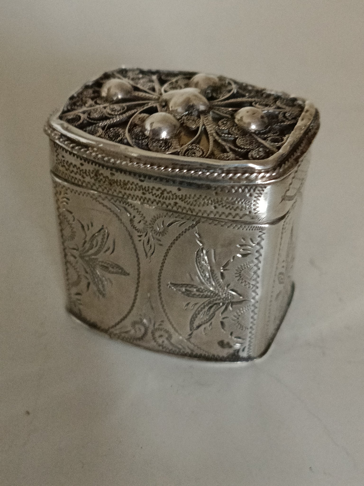 Ravissante petite boîte à thé de voyage hollandaise en argent massif. Daté 1874