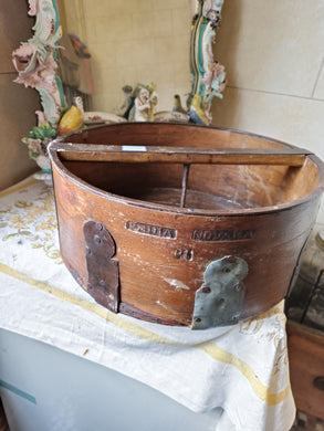 Mesure à grains ancienne, art populaire bois ceintré, avec poinçons autorité officiel et nom de famille du paysan .
