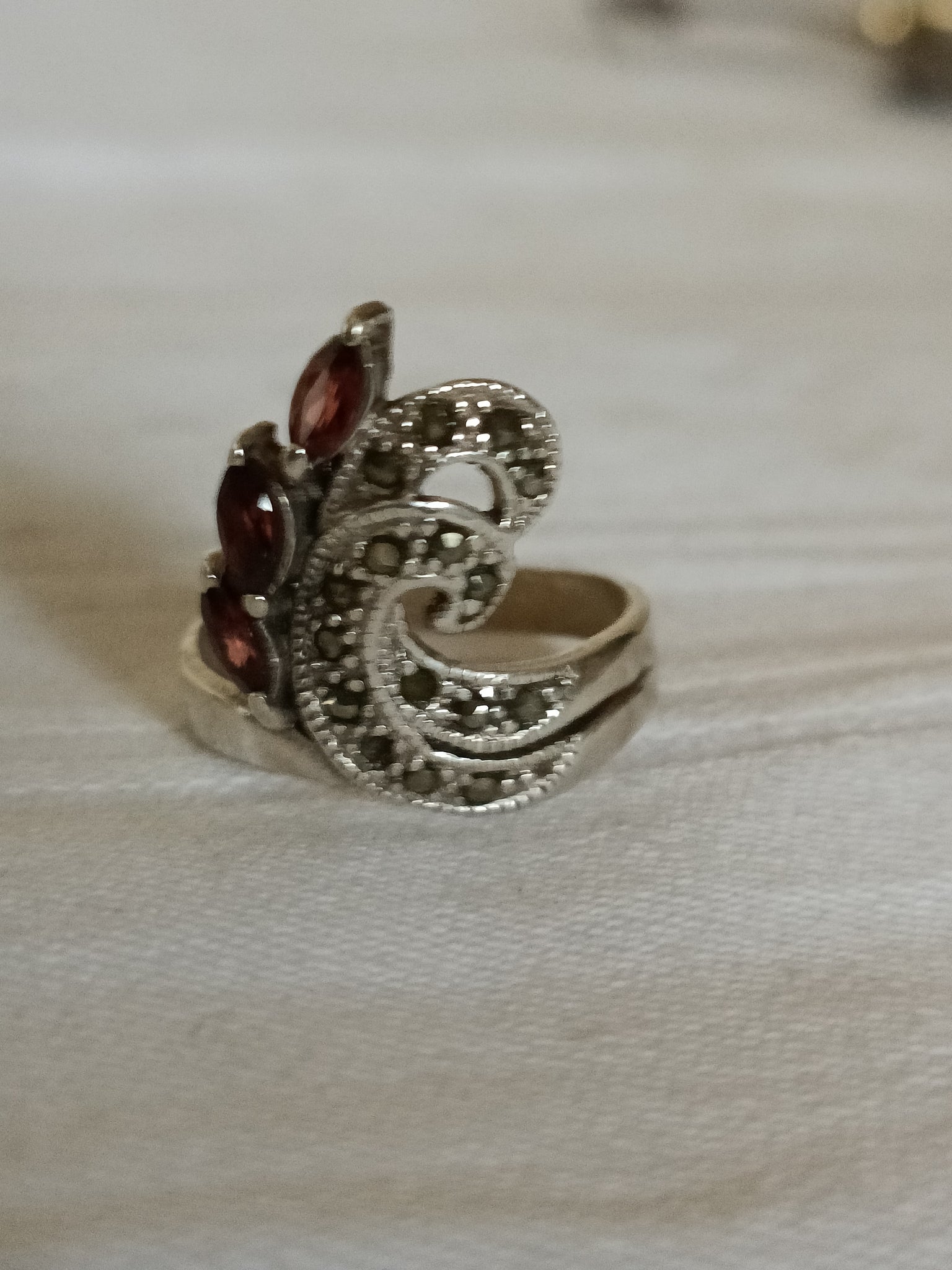Bague en argent et pierres . Manque deux Marcassite. En l'état