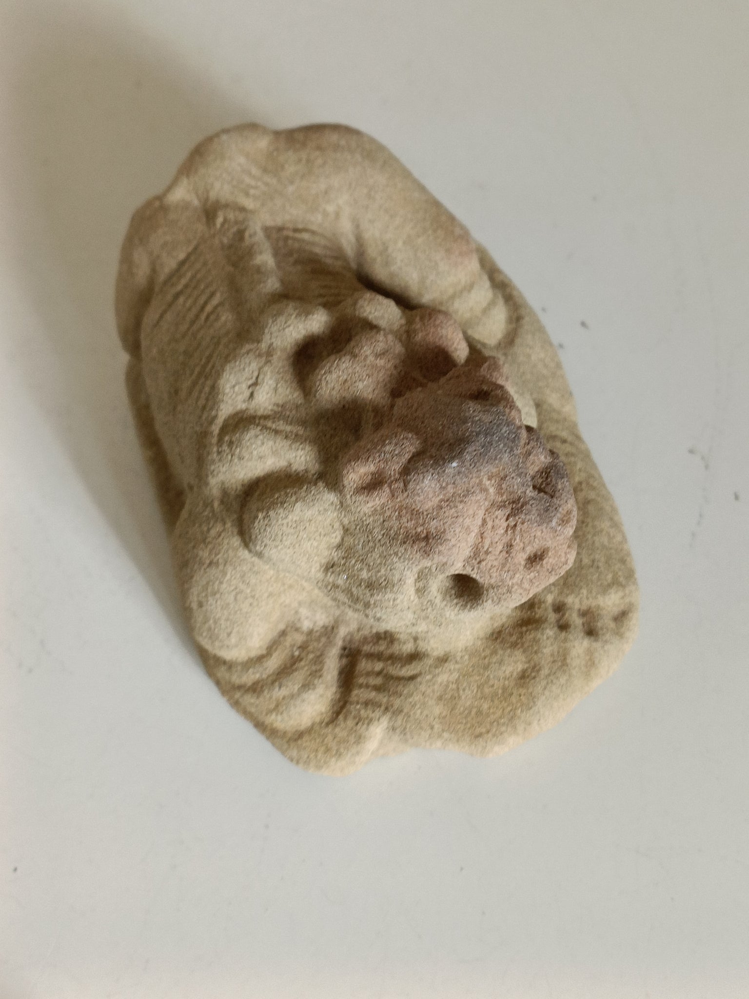 Chien de Fô chinois probablement XVIIIE en pierre volcanique érodée. Belle pièces avec du cachet !