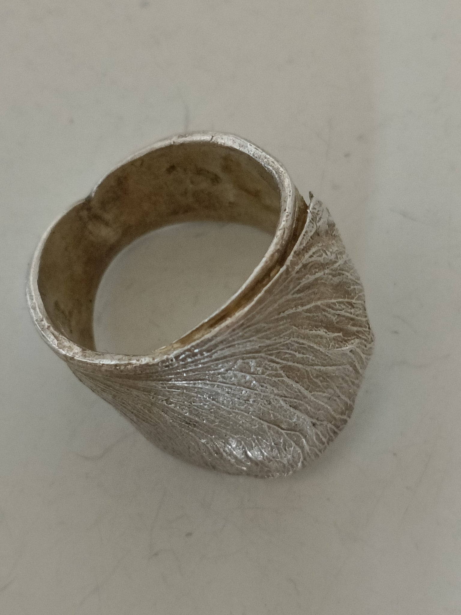 Magnifique bague cire perdue en argent massif,feuille de ginko. Poinçon bijoutier à identifier