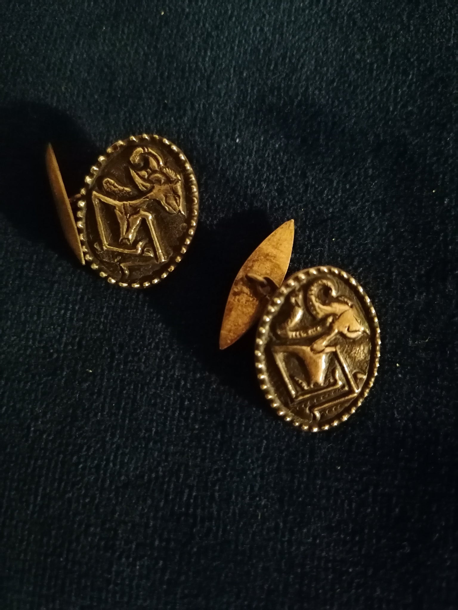 Rangda et barong mythologie Javanaise paire de bouton de manchette en argent massif fait main.