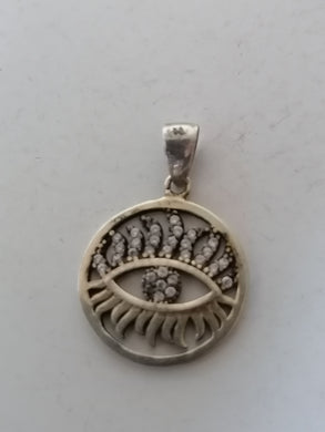 Ancien pendentif en argent avec pierre taillé . Décors roses.