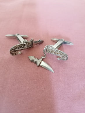 Paire de bouton de manchette orientale en argent massif. Poignard