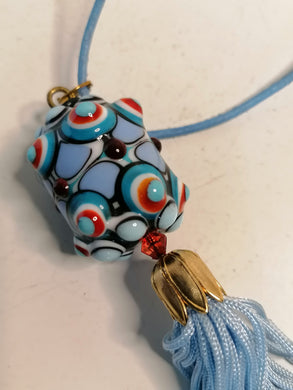 Pendentif en verre soufflé avec Collier en cuir.