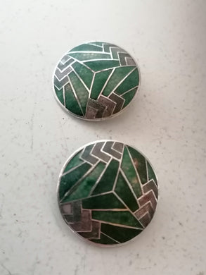 Paire de clou d'oreille argent et verre. Style Art déco