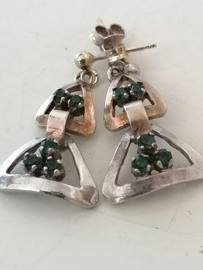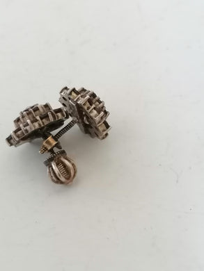 Paire de clou d'oreille ancien argent doré et pierre.