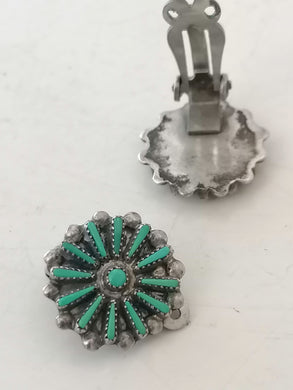 Paire de clip d'oreille en argent et pierre Turquoise. Mexique.