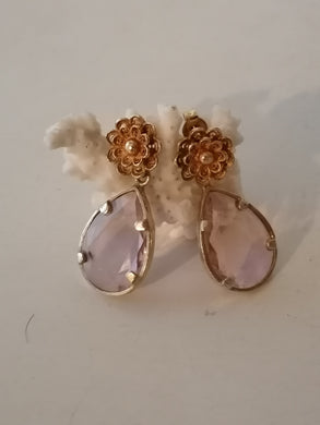 Paire de boucle d'oreille doré et solitaire en cristal taillé.