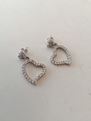 Paire de clou d'oreille argent doré et cristaux taillés, forme de cœur.