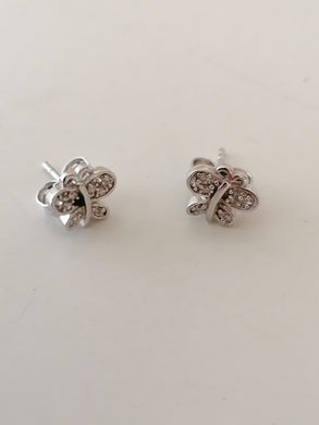 Paire de petit clou d'oreille argent doré, motif papillon sertie de cristaux.