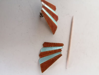Paire de boucle d'oreille en argent émaillé, décors paon