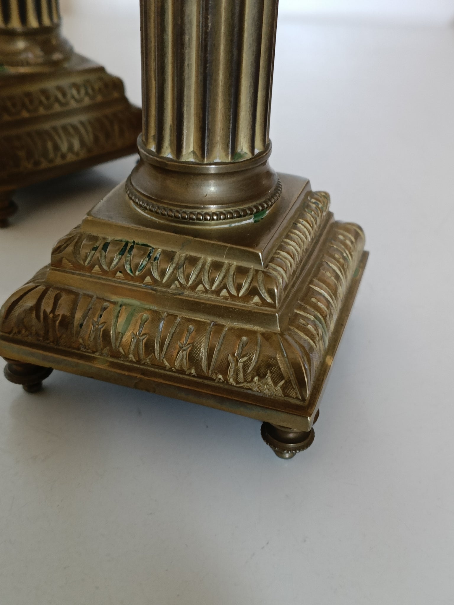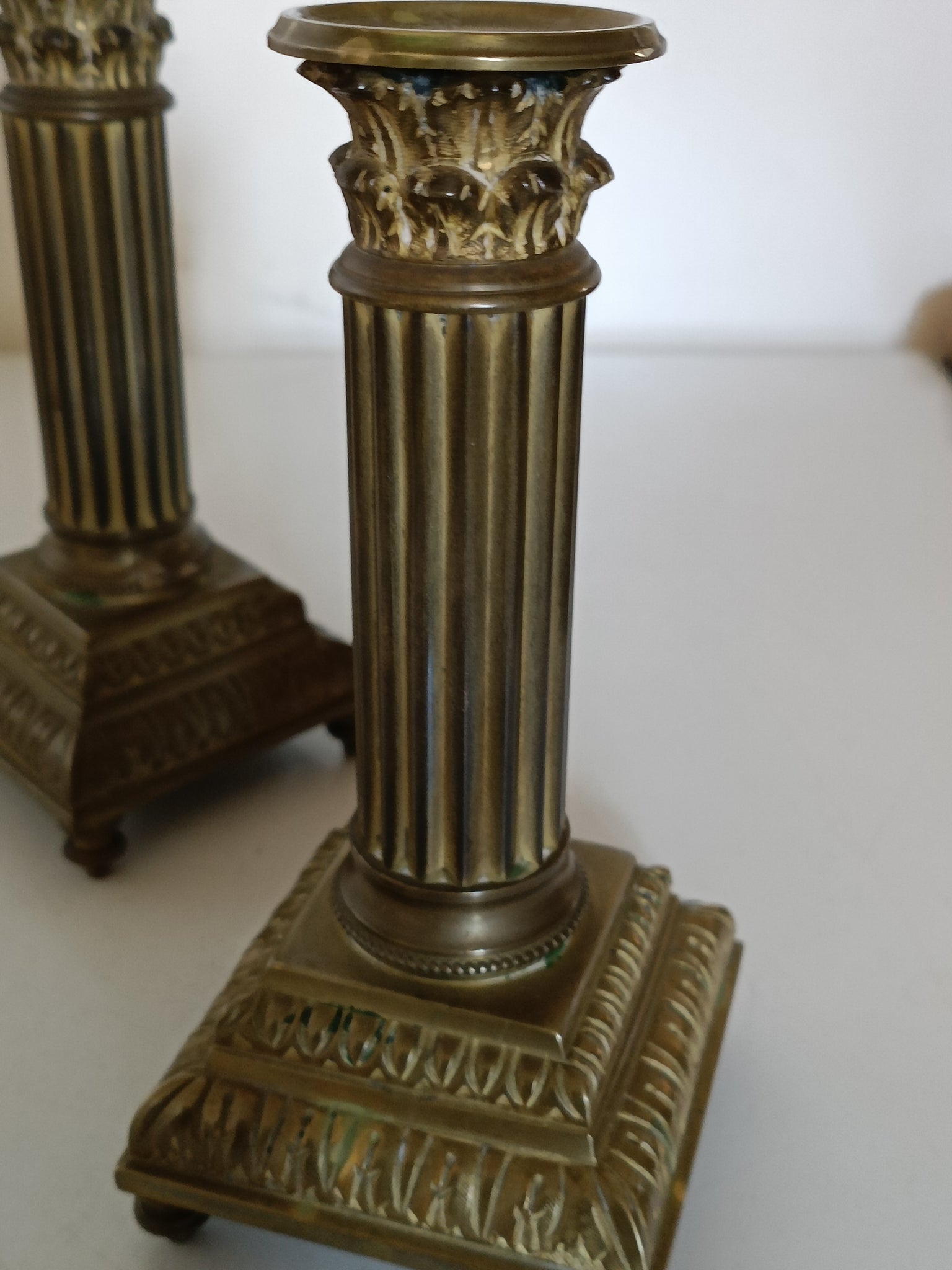 Paire de bougeoir en bronze doré , style Louis XVI d'époque Napoléon III. Signé et usure de la dorure