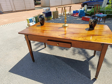 Table de ferme en cerisier massif , Directoire . Avec 3 tiroirs. Travail Suisse allemand début XIXE