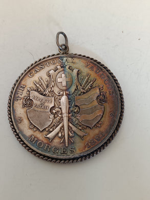 Médaille tir cantonal Vaudois Morge 1891 en argent , montée en pendentif.
