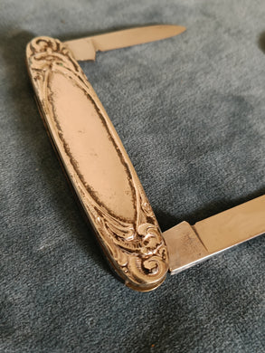 Petit couteau de poche art déco , lame en Inox Solingen, plaque en argent massif .