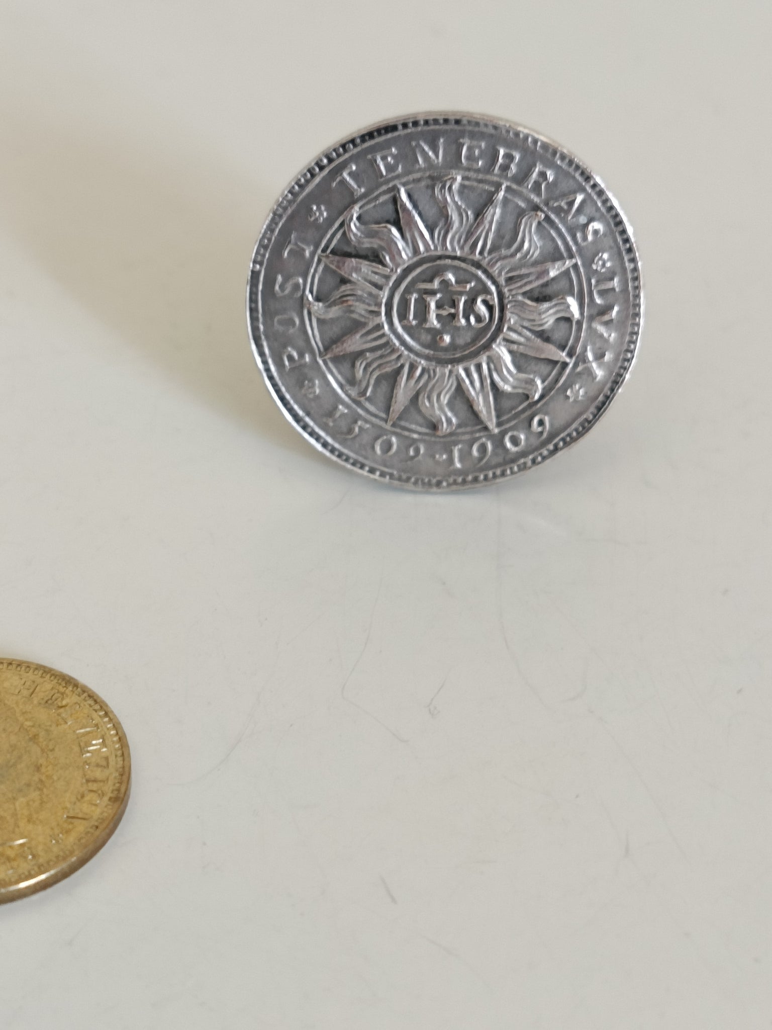 Médaille Protestante badge argenté, 400 ans de Calvin 1509/1909 fabrication genevoise