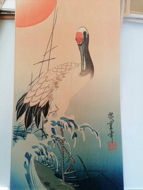 Ravissante estampe chinoise rehaussée. Signé avec cachet. Avec cadre doré
