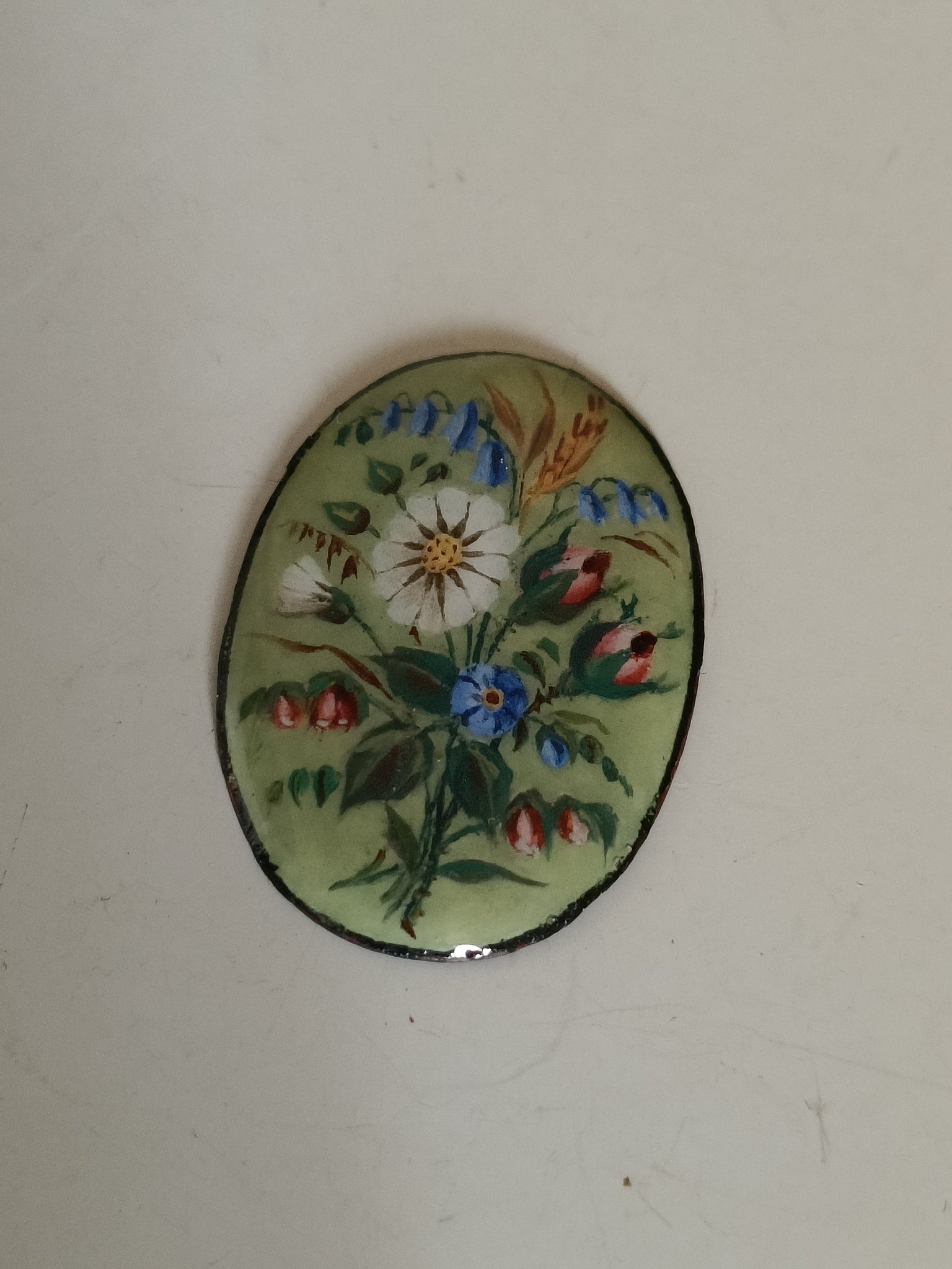 Médaillon nature morte peint à la main et émaillé. Travail fin  probablement genevois fin XIX ème début XXÈME