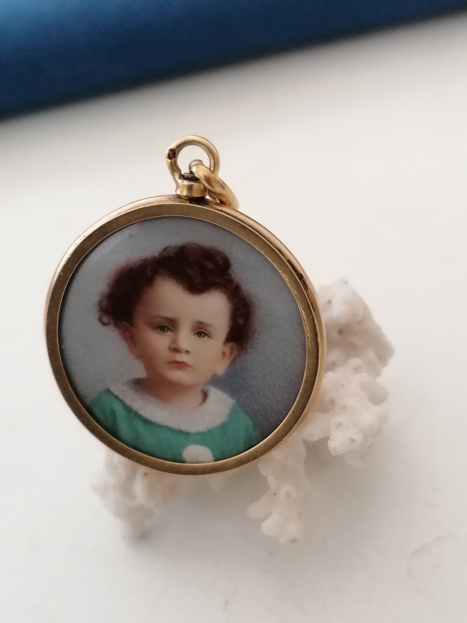 Rare médaillon double, portrait d'enfants peint à la main au point. Travail Genevois vers 1900. Monture or 18 carat.