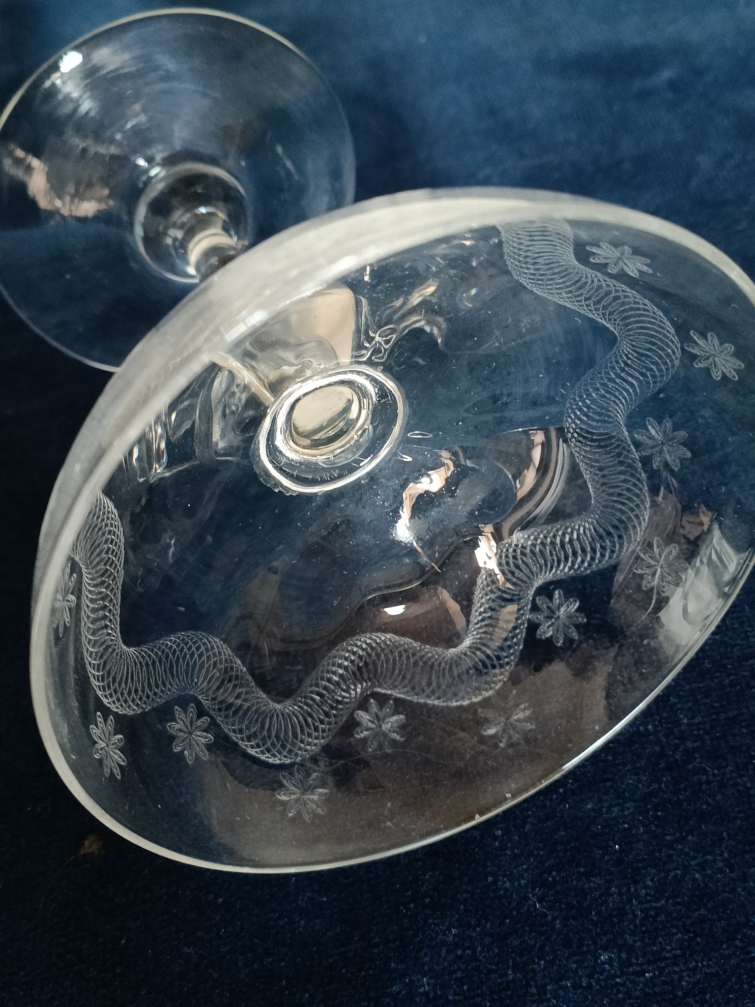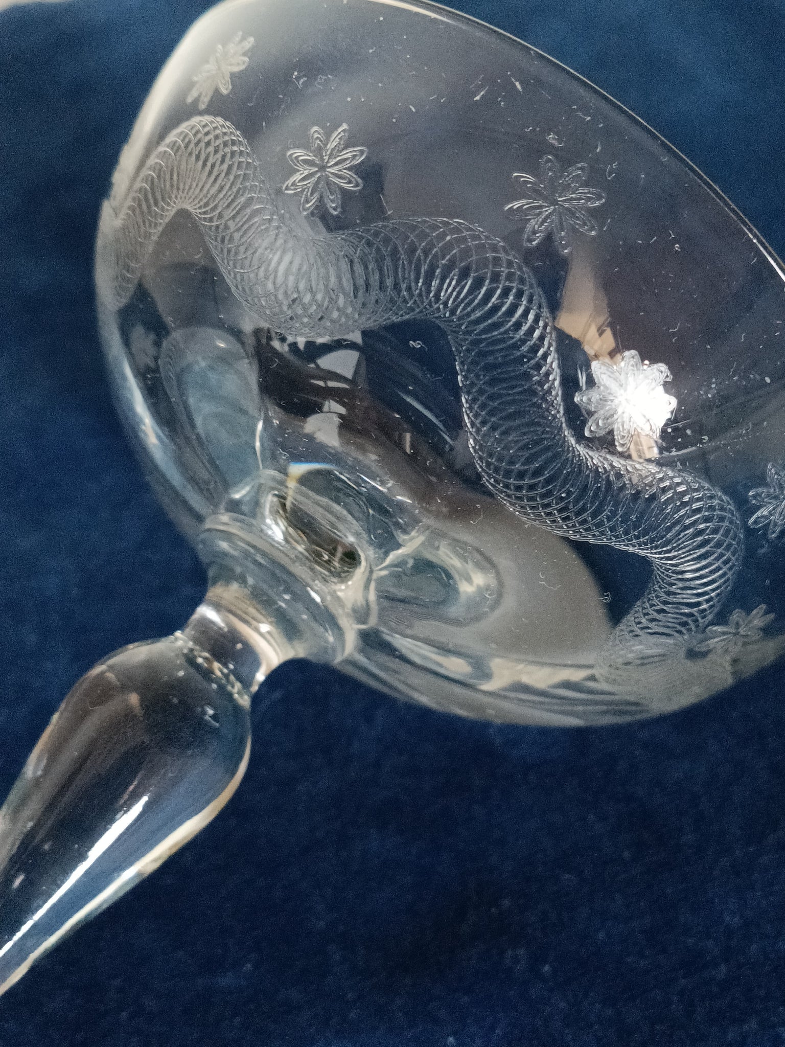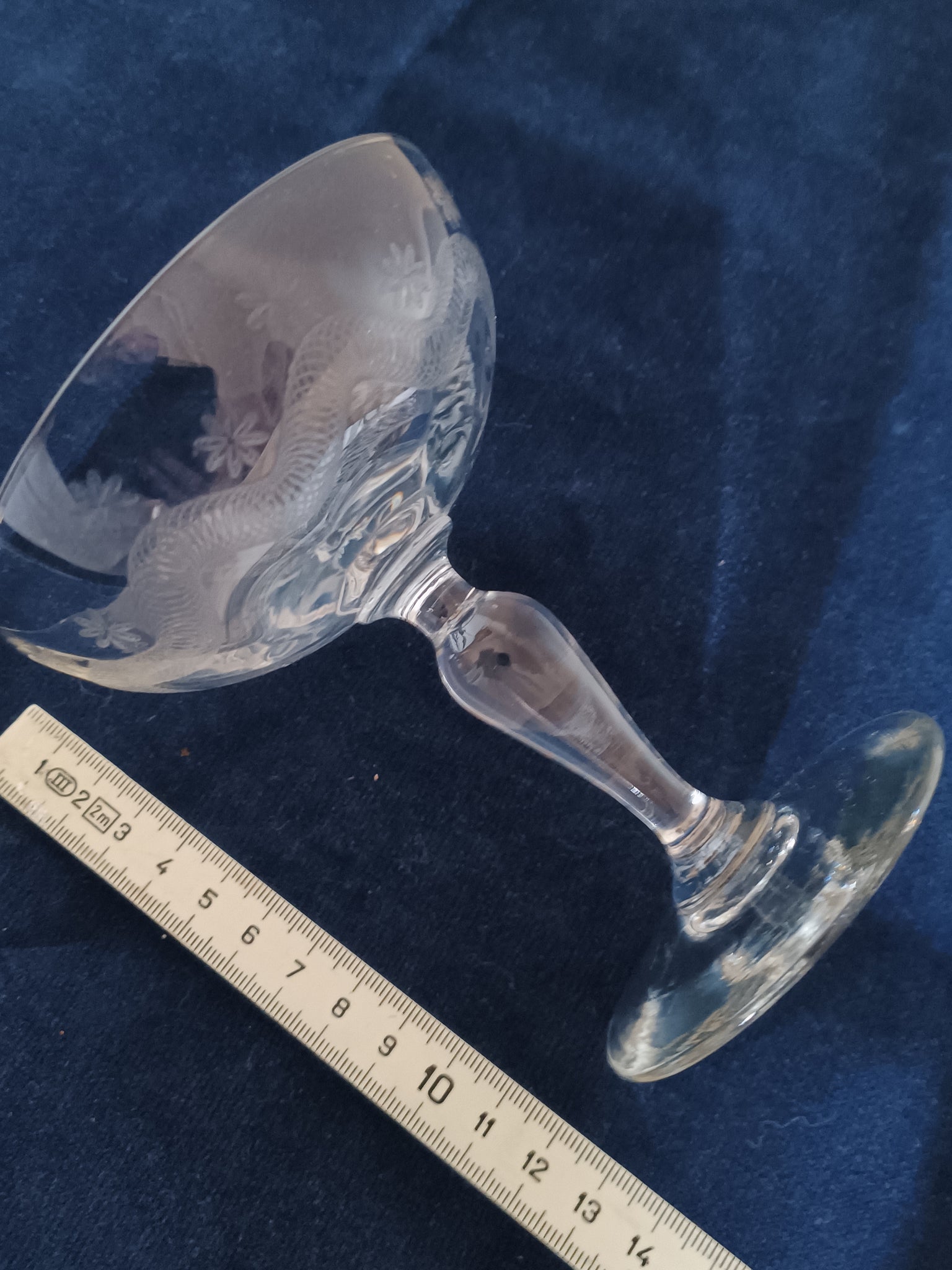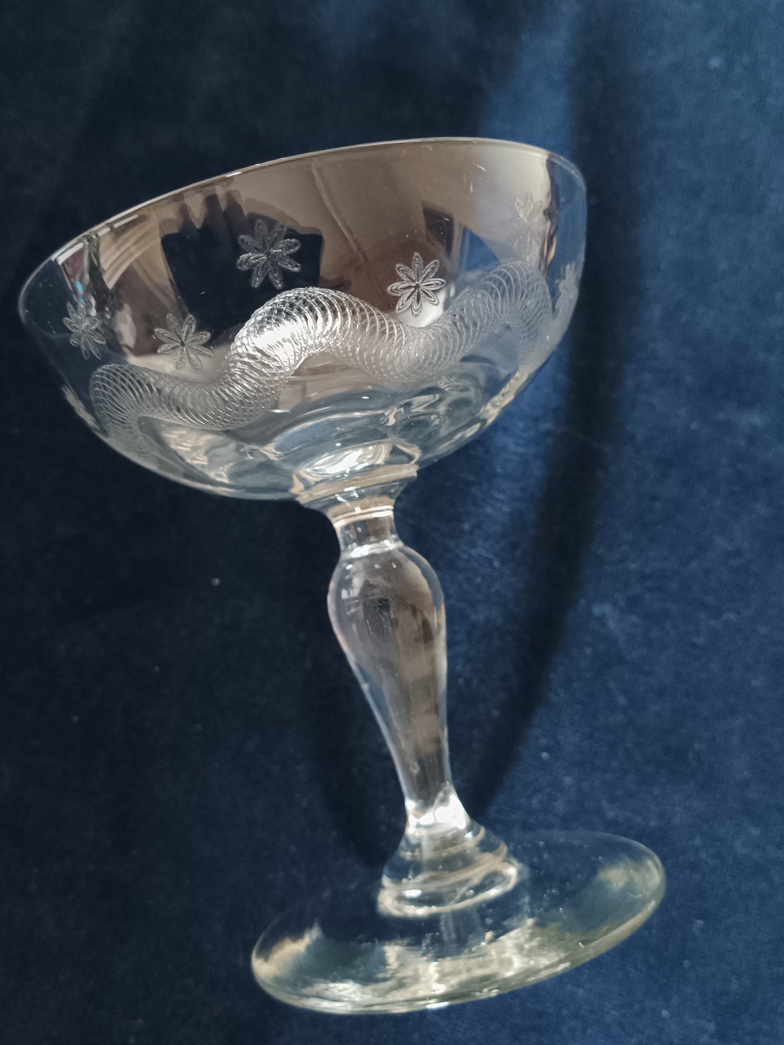 Coupe à Champagne solitaire en verre soufflé et gravé. Milieu XXÈME