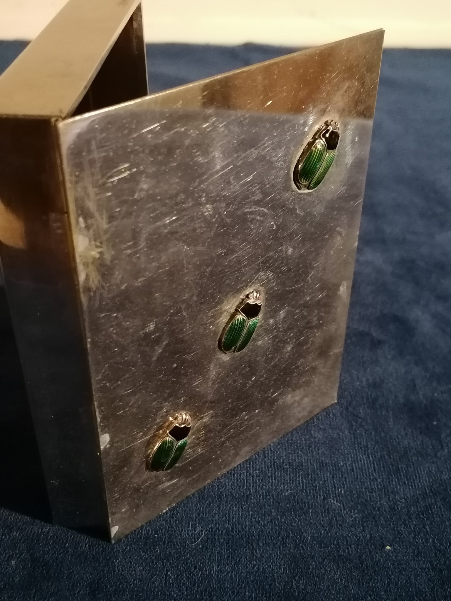Boîte en métal argenté avec insecte émaillé sur le couvercle. Travail artisanale création non signé