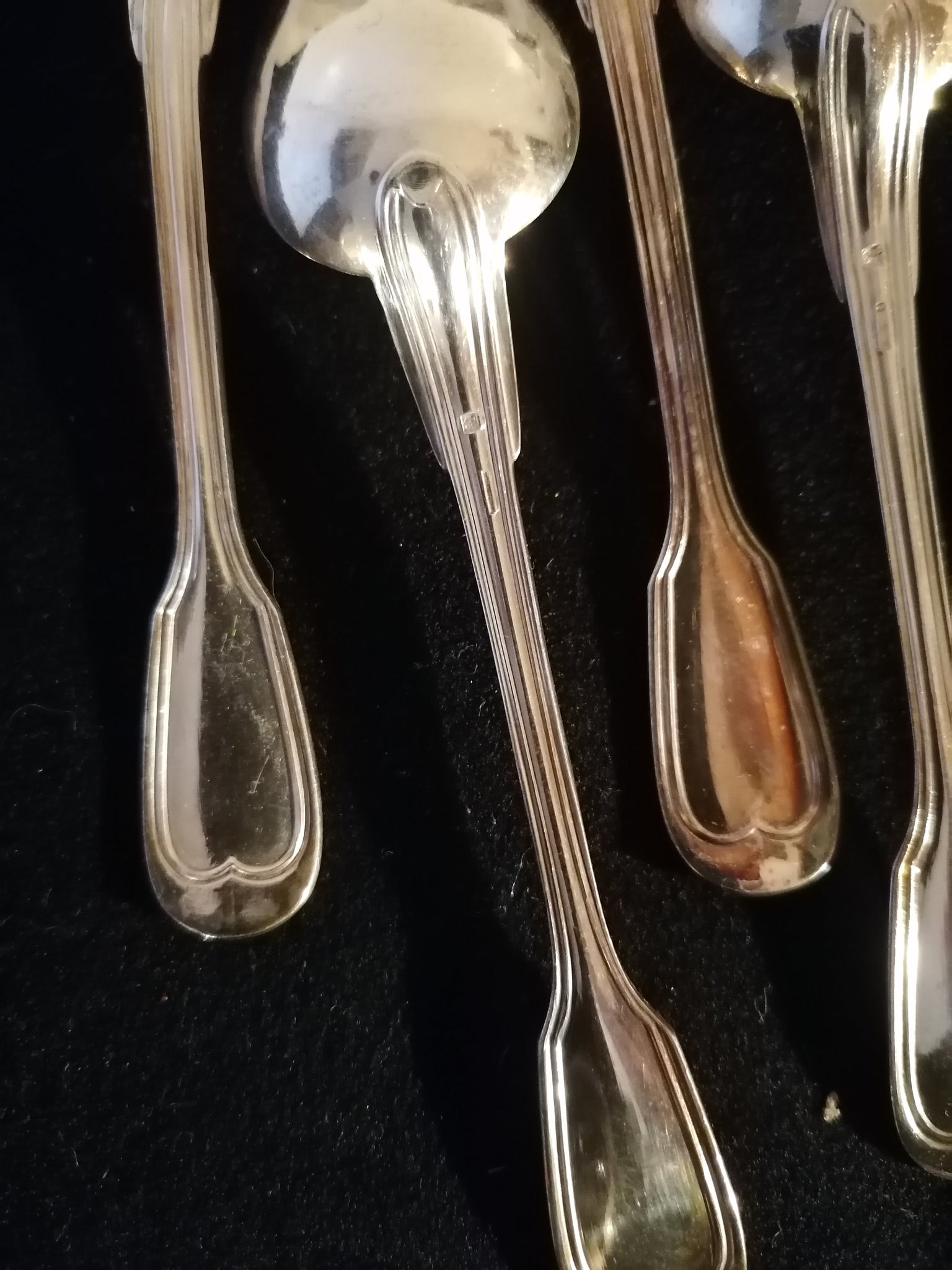 Christofle filet ancien Série de 6 cuillères à thé ou dessert argenté. Parfait état