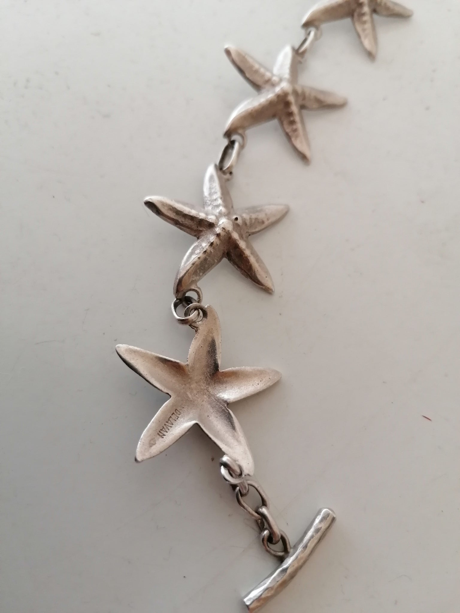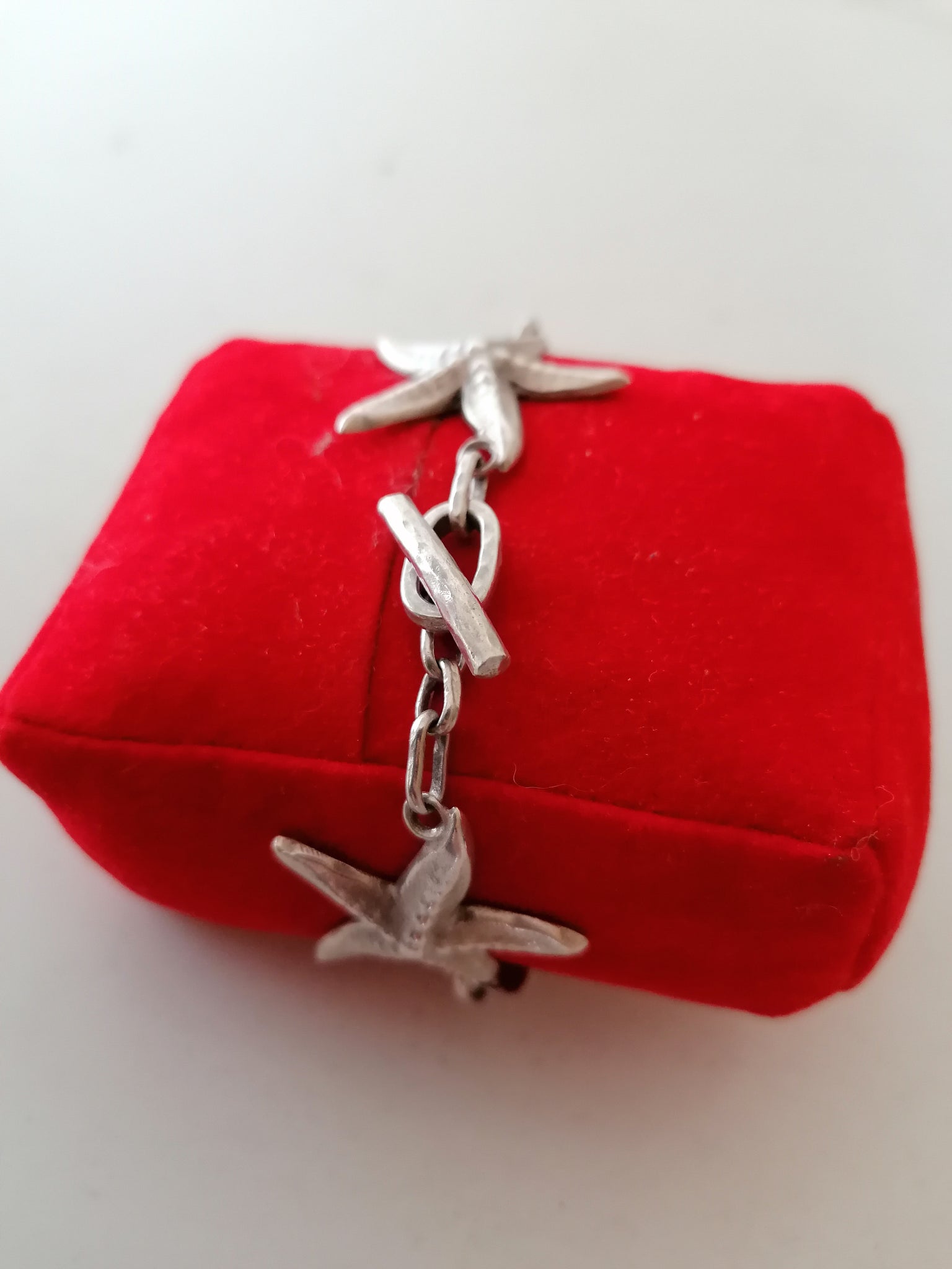 René Delavan bracelet d'époque Art déco étoile de mer en argent massif. Poinçons de maître.