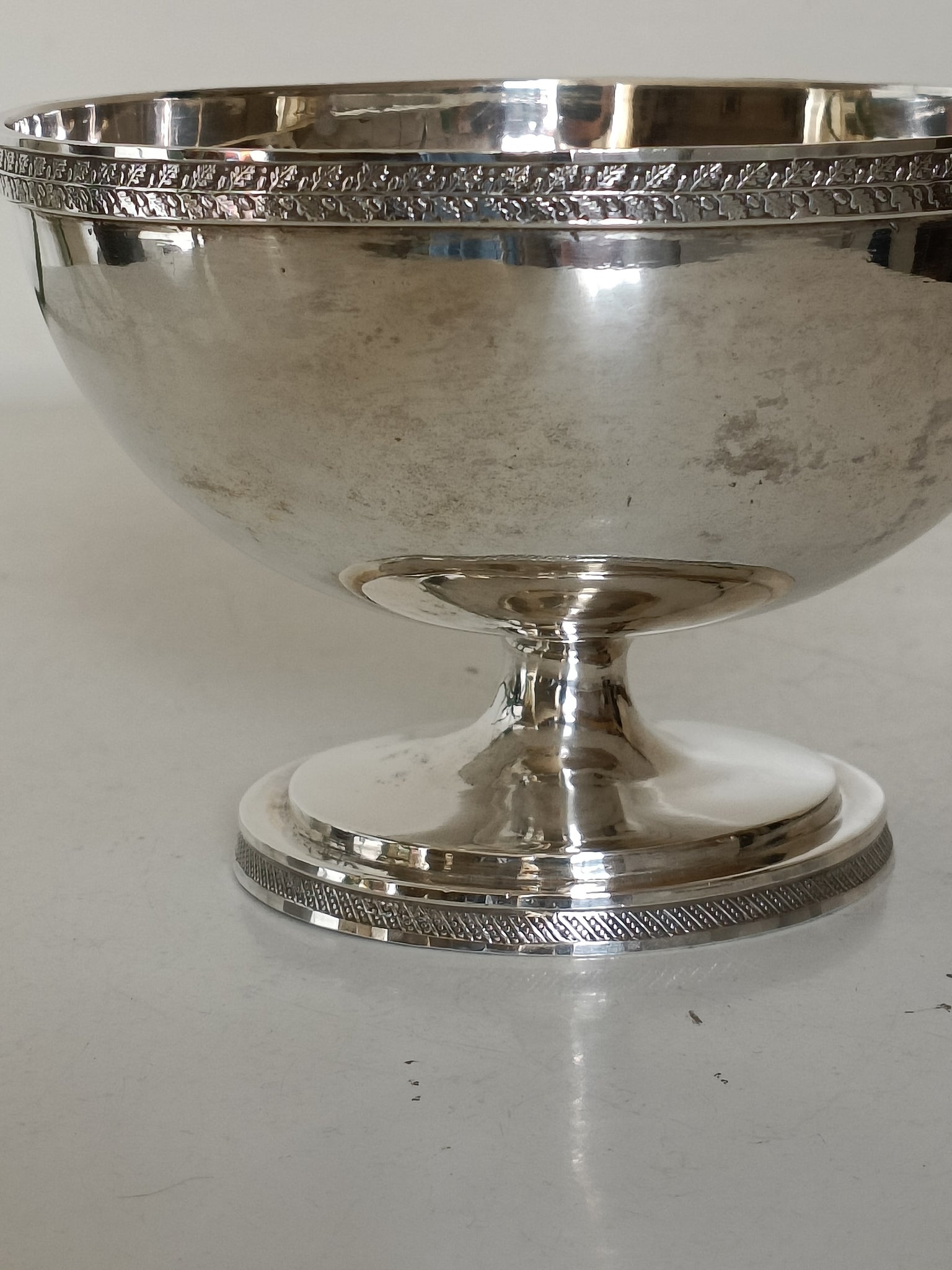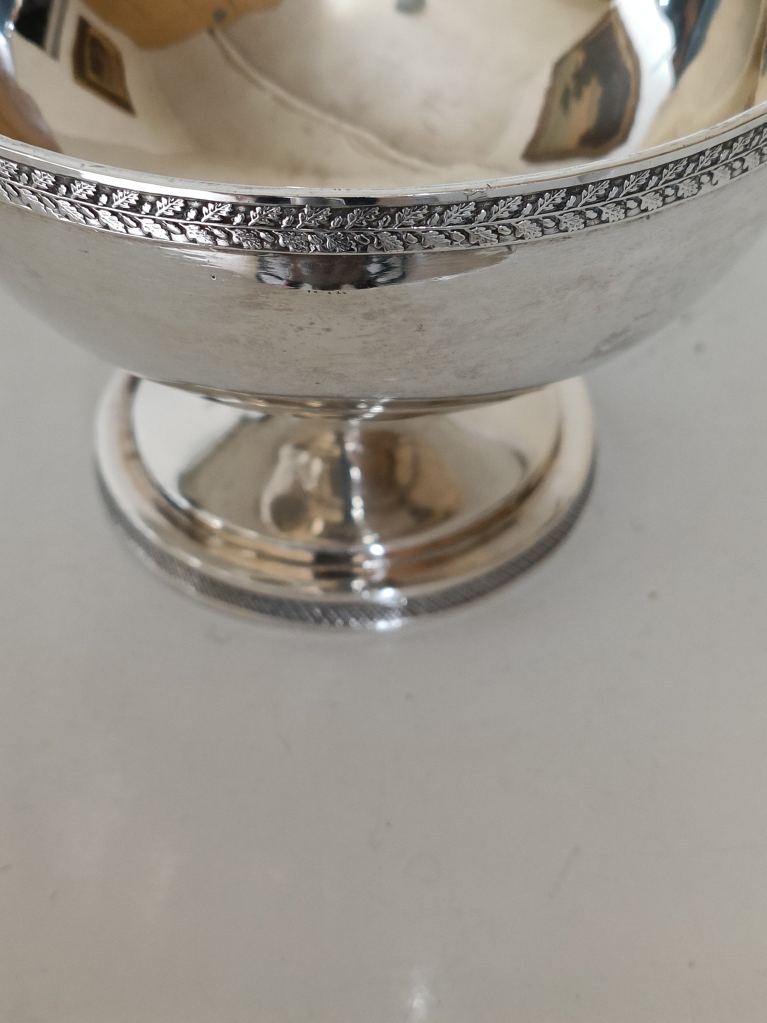 Magnifique coupe en argent massif vieux Lausanne. Décors de grande finesse avec feuille de chêne et gland le pourtour du piédouche est à facettes. Avec poinçon de maître et ville de Lausanne ,et titre . 250g pour une pièce de musée !