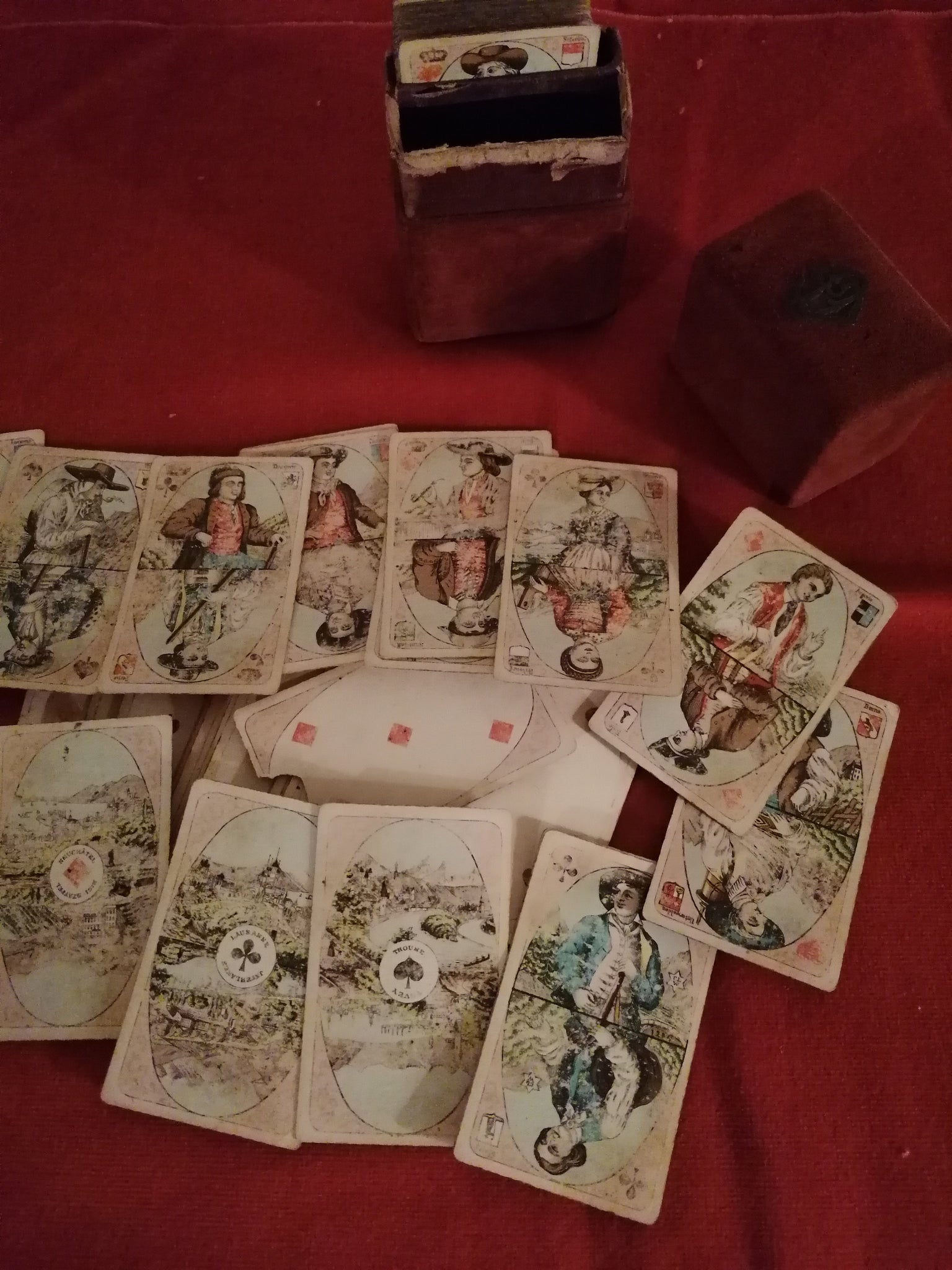 Jeux carte avec personnages et Canton Suisse, et son écrin d'origine, monogramme argent