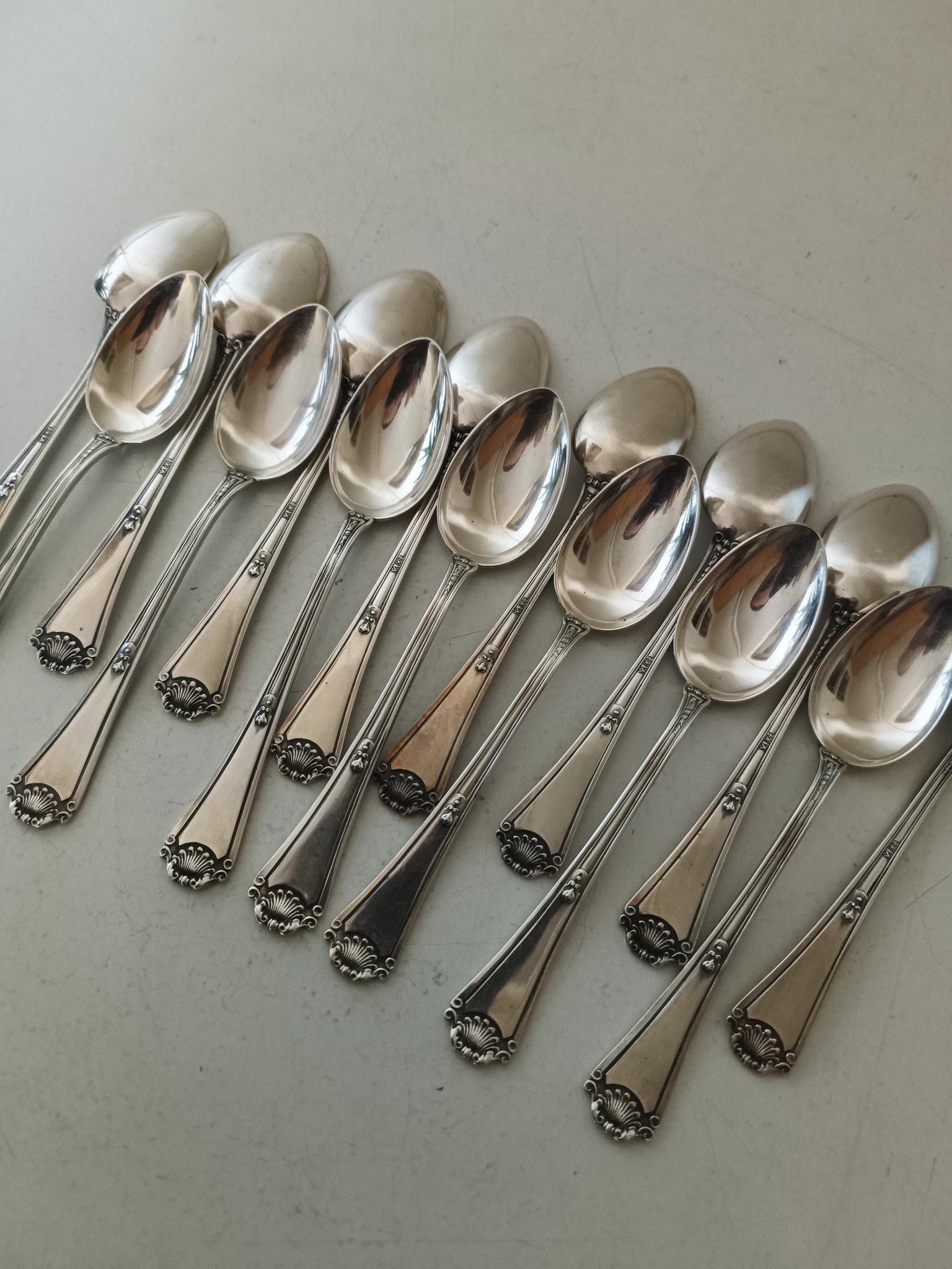 Jezler coquille Louis XIV série de 15 cuillère à café en argent massif.
