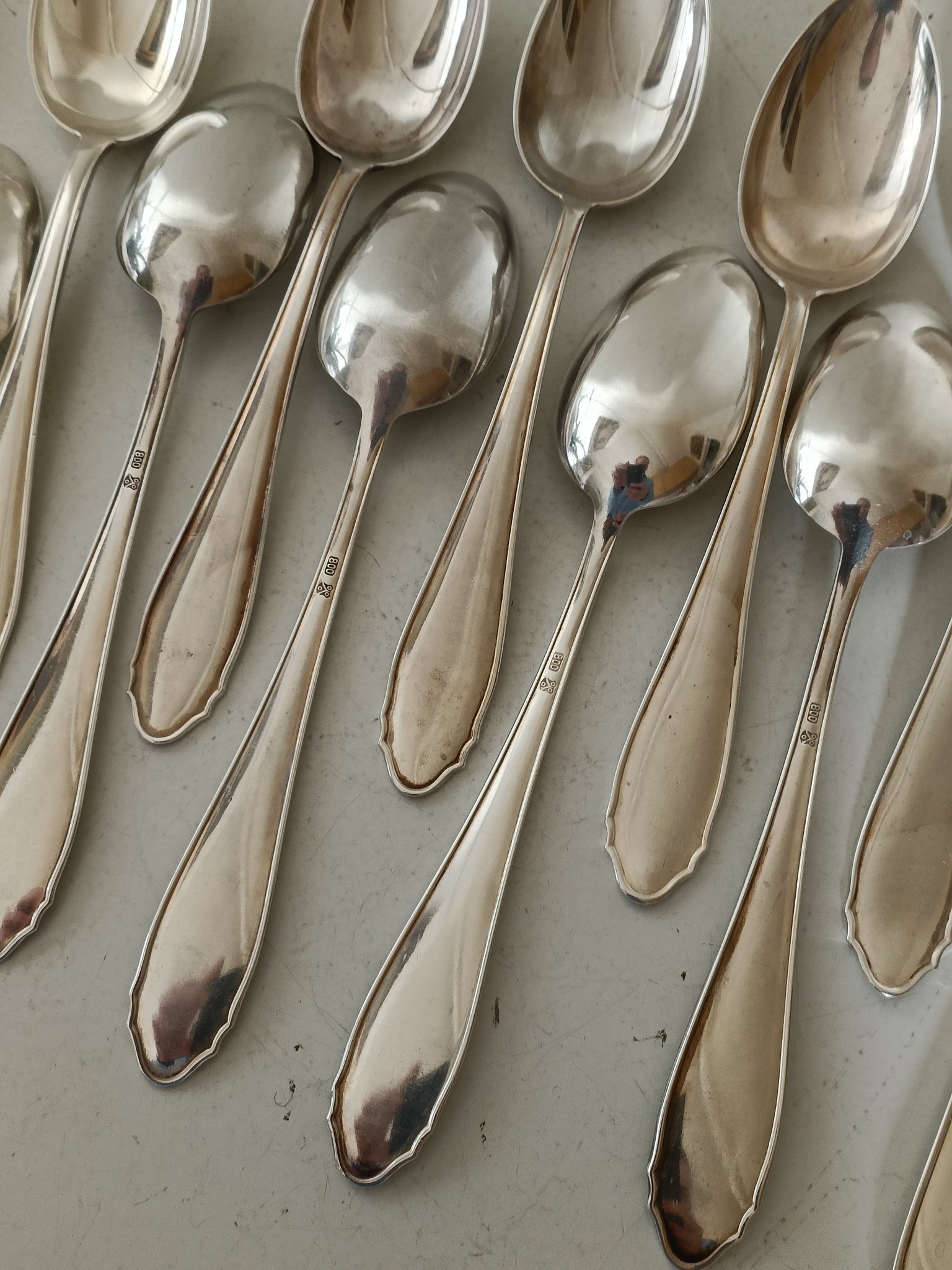 Jezler la Reine 12 cuillères à entre mets , argent massif 0.800. Presque jamais servies. 345g