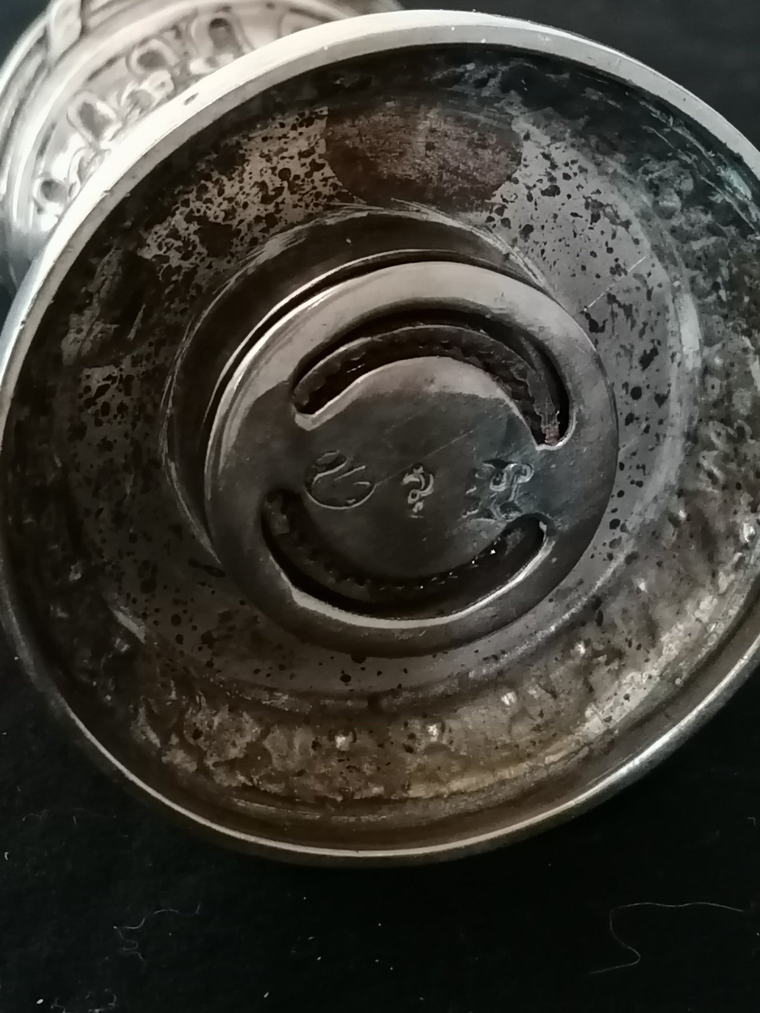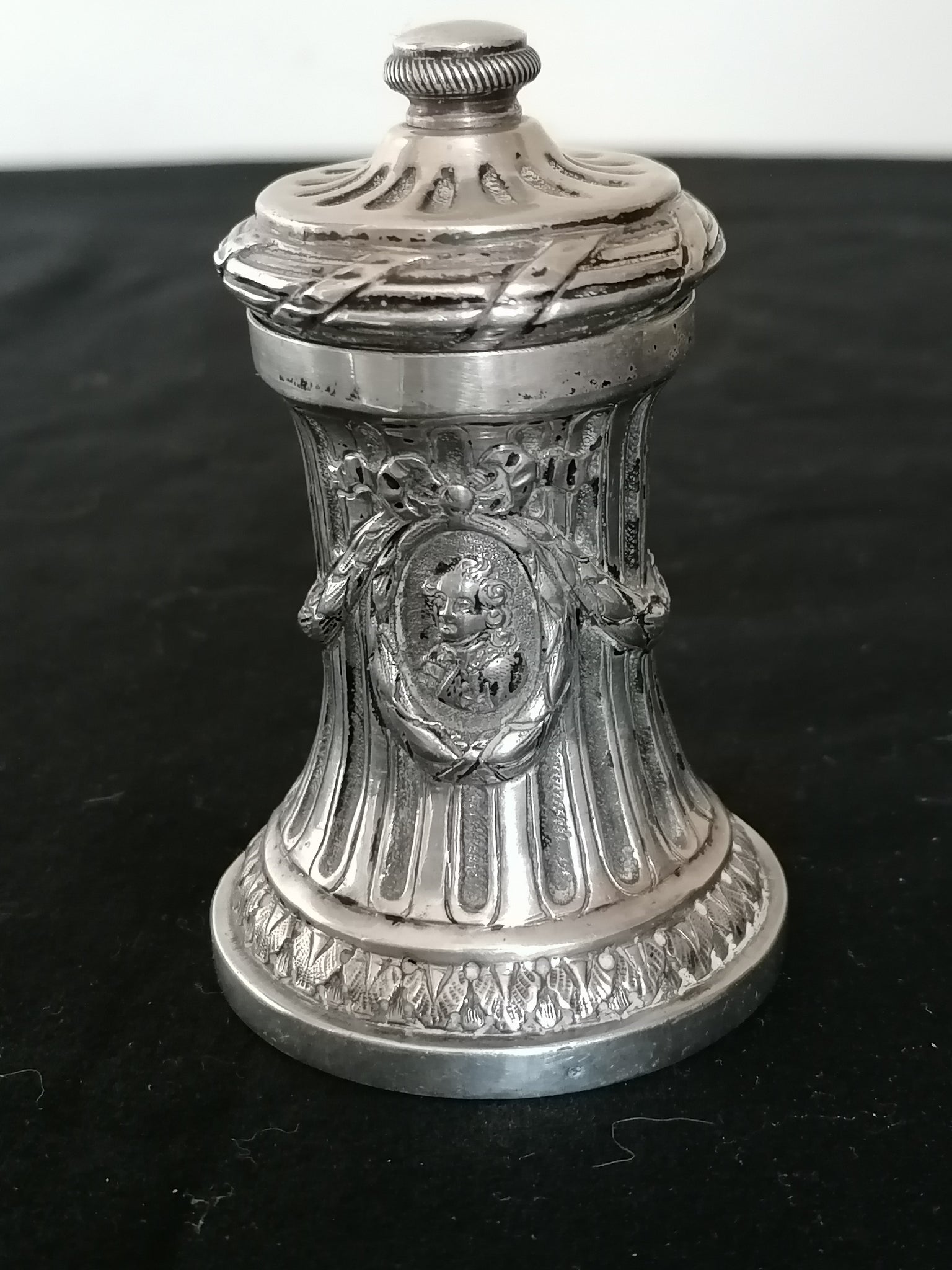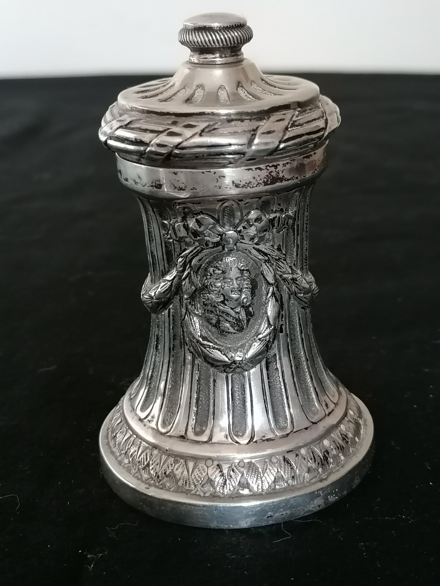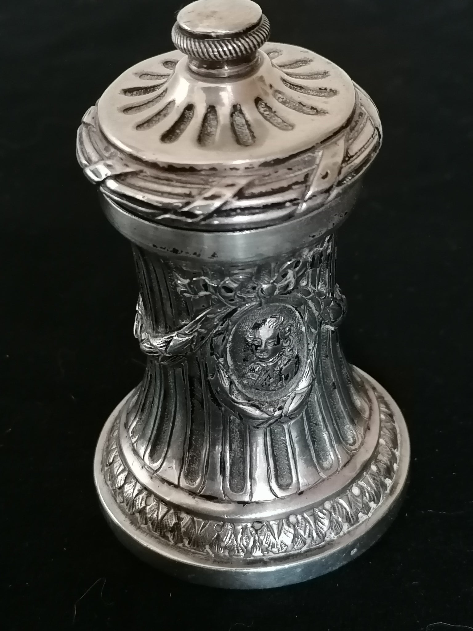 Moulin à poivre Allemand XIXème, style Louis XVI en argent massif.