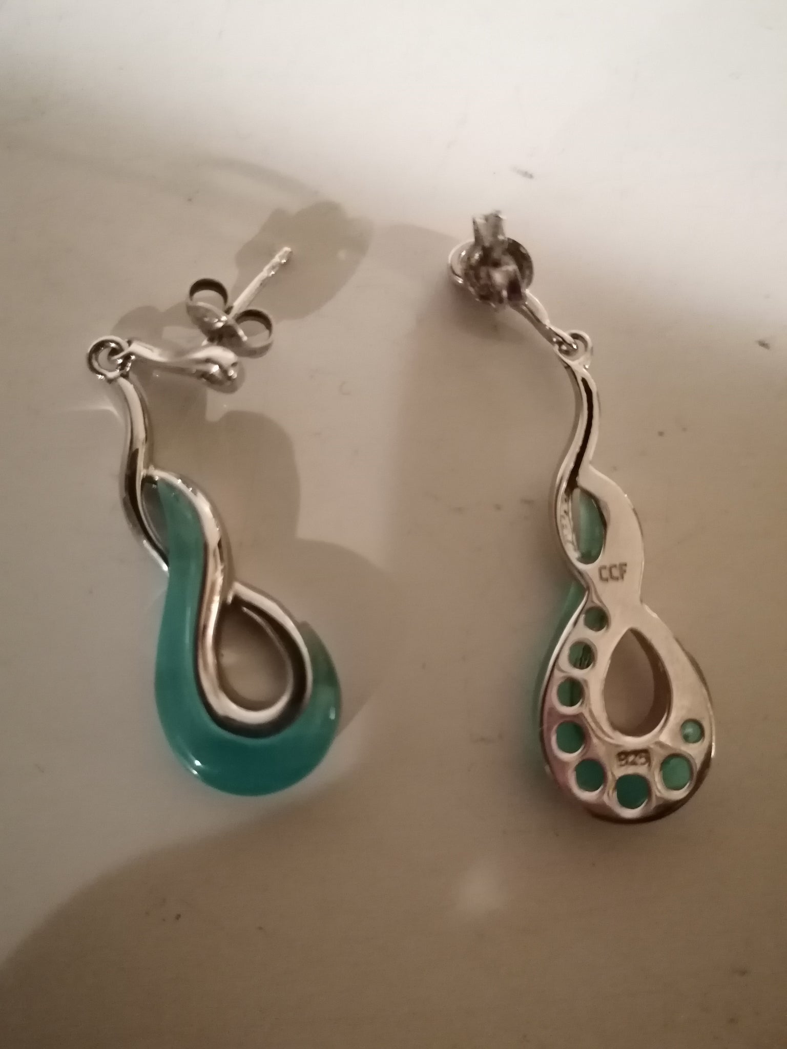 Paire de boucle d'oreille argent rhodié et pierre synthétique