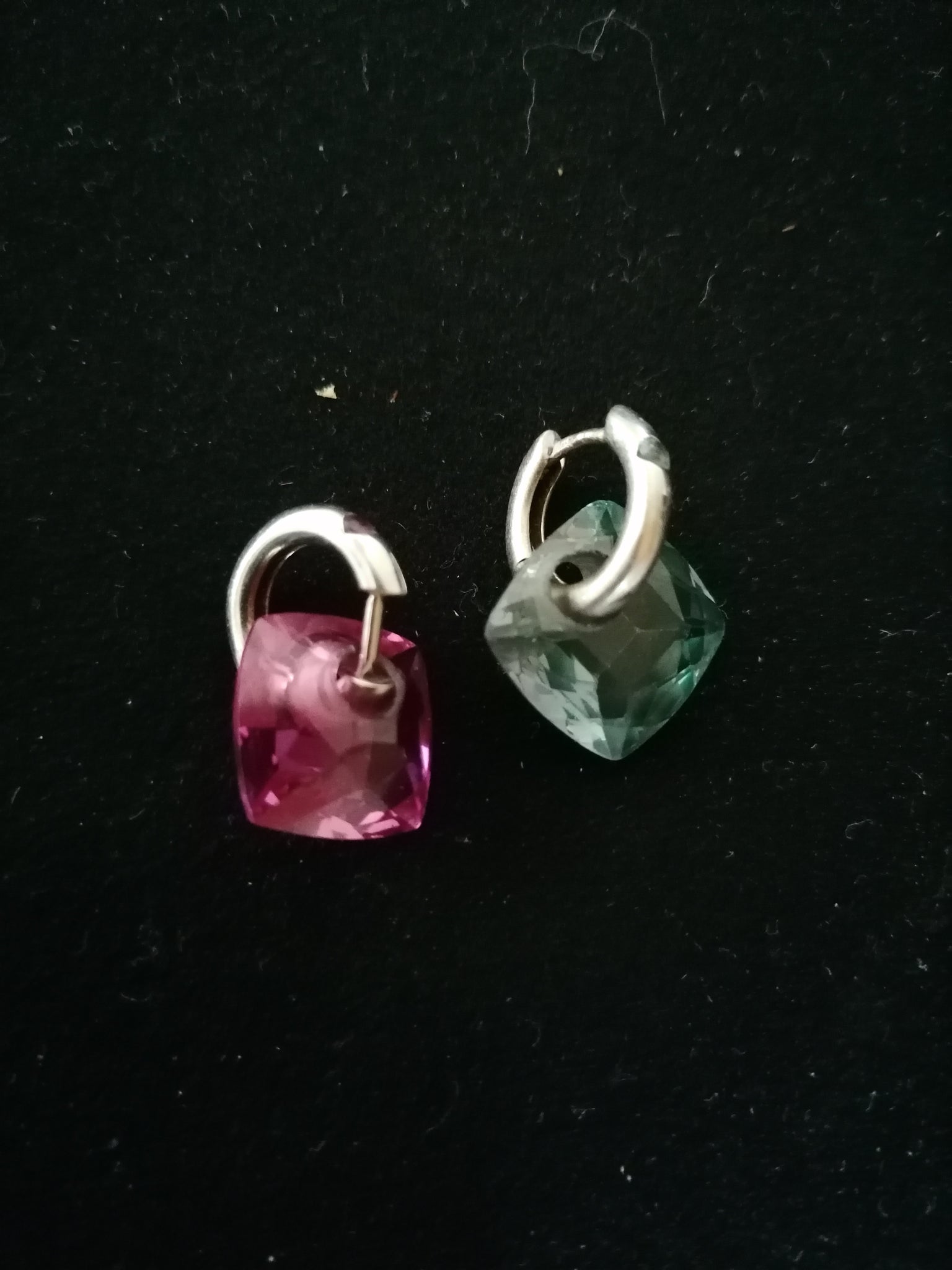 Paire de boucle d'oreille Or blanc 18 carats et pierre synthétique taillé.
